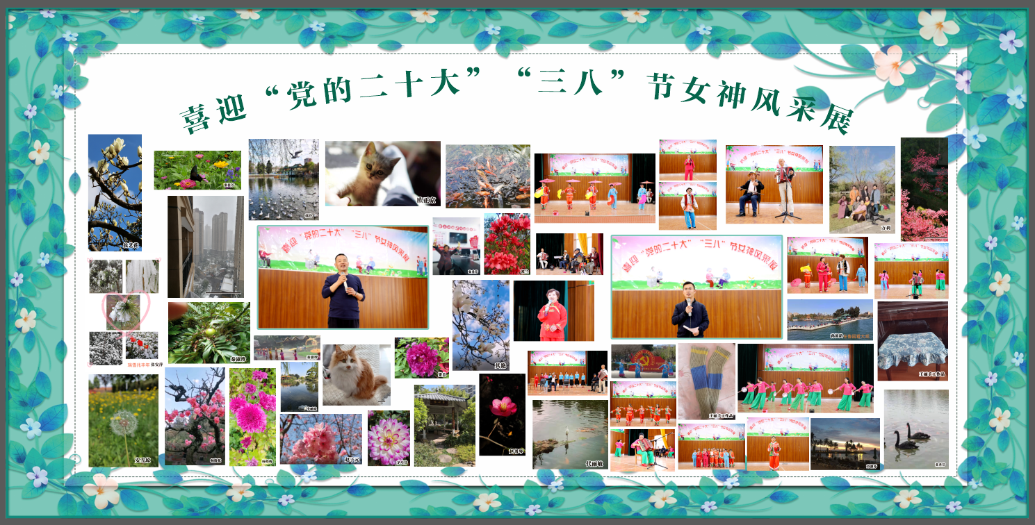 通知中心陽春三月,春意盎然,在第112個“三八”國際勞動婦女節(jié)之際,為促進離退休女教職工的身心健康,豐富離退休女同志們的退休生活,根據(jù)學院離退休女教職工的年齡及居住情況等特點和疫情防控要求,離退休人員服務(wù)辦公室于3月1日至31日期間,采取個人或團體進行健身、娛樂、才藝等活動,包括陽光健走、巧手制作(編織、十字繡、書法、繪畫、插花)、歡歌悅舞、攝影視頻等靈活多樣的方式,組織開展“喜迎黨的二十大‘三八’節(jié)女神風采展”系列活動。