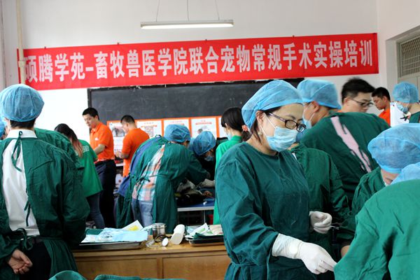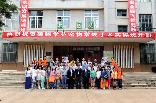 在學校迎接特色評估期間的6月18日至20日,畜牧獸醫學院與全球最大寵物動保公司——中國碩騰學苑聯合,聘請河南農業職業技術學院田超老師,為來自全國11個省市寵物醫師及畜牧獸醫學院師生開展常規手術實操培訓。培訓的口號是:牧醫進寶校企校三聯合促云南農職發展鑄輝煌,碩騰生金強中強再結緣為寵物事業騰飛插翅膀!