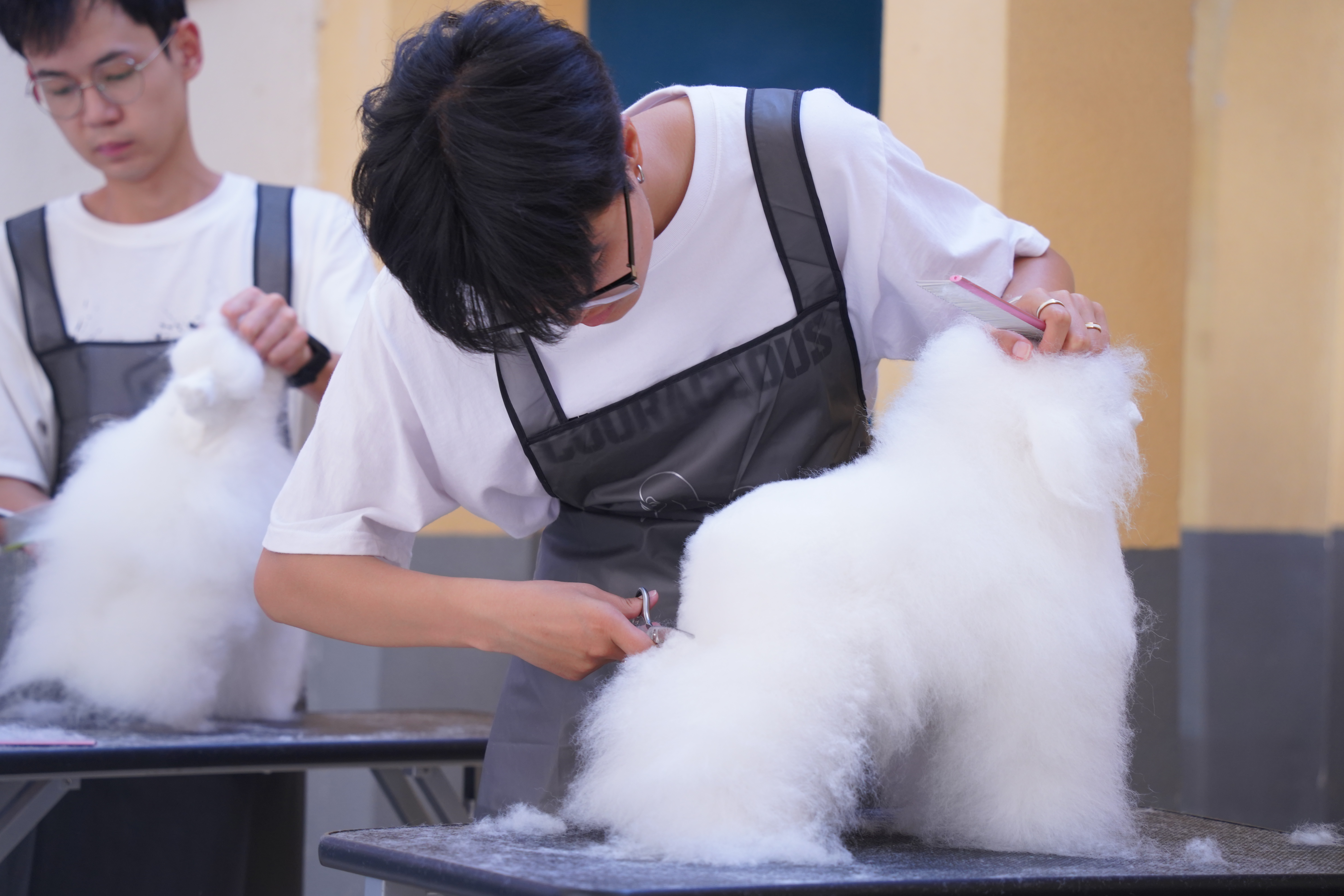 畜牧獸醫學院展區,寵物美容專業的師生向參觀同學們展示了扎實的寵物美容基本功和高水平的專業技術;動物醫學專業的學生現場講解了留置針的安置技術、常見的外科手術器械和內固定技術,展現出了熟練的臨床技術和專業素養。