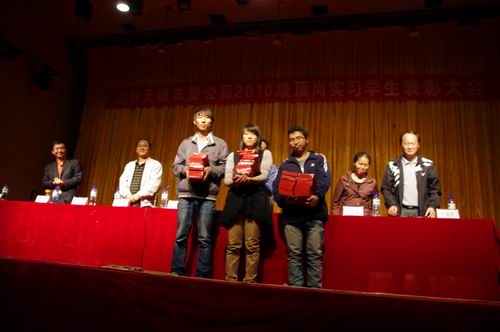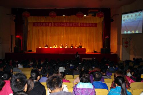 昆明天穗農(nóng)資有限公司總經(jīng)理張宏生動匯報了2010級作物生產(chǎn)技術(shù)、種子生產(chǎn)與經(jīng)營專業(yè)頂崗實習(xí)學(xué)生取得的成效;并宣布了獲得頂崗實訓(xùn)優(yōu)秀學(xué)生名單,89人同學(xué)獲得了優(yōu)秀學(xué)生實訓(xùn)證書和獎品。美國陶氏益農(nóng)公司云南辦事處主任李永明先生就學(xué)生如何參與頂崗實訓(xùn),在頂崗實訓(xùn)中鍛煉成長發(fā)表講話。云南英茂花卉產(chǎn)業(yè)公司馬俊仙總經(jīng)理助理就生物技術(shù)及應(yīng)用專業(yè)學(xué)生頂崗實訓(xùn)情況進行了總結(jié)發(fā)言。頂崗實訓(xùn)優(yōu)秀學(xué)生代表——10級作物一班李玲佳發(fā)言,還有幾個實習(xí)學(xué)生朗誦了自己的實習(xí)日記。