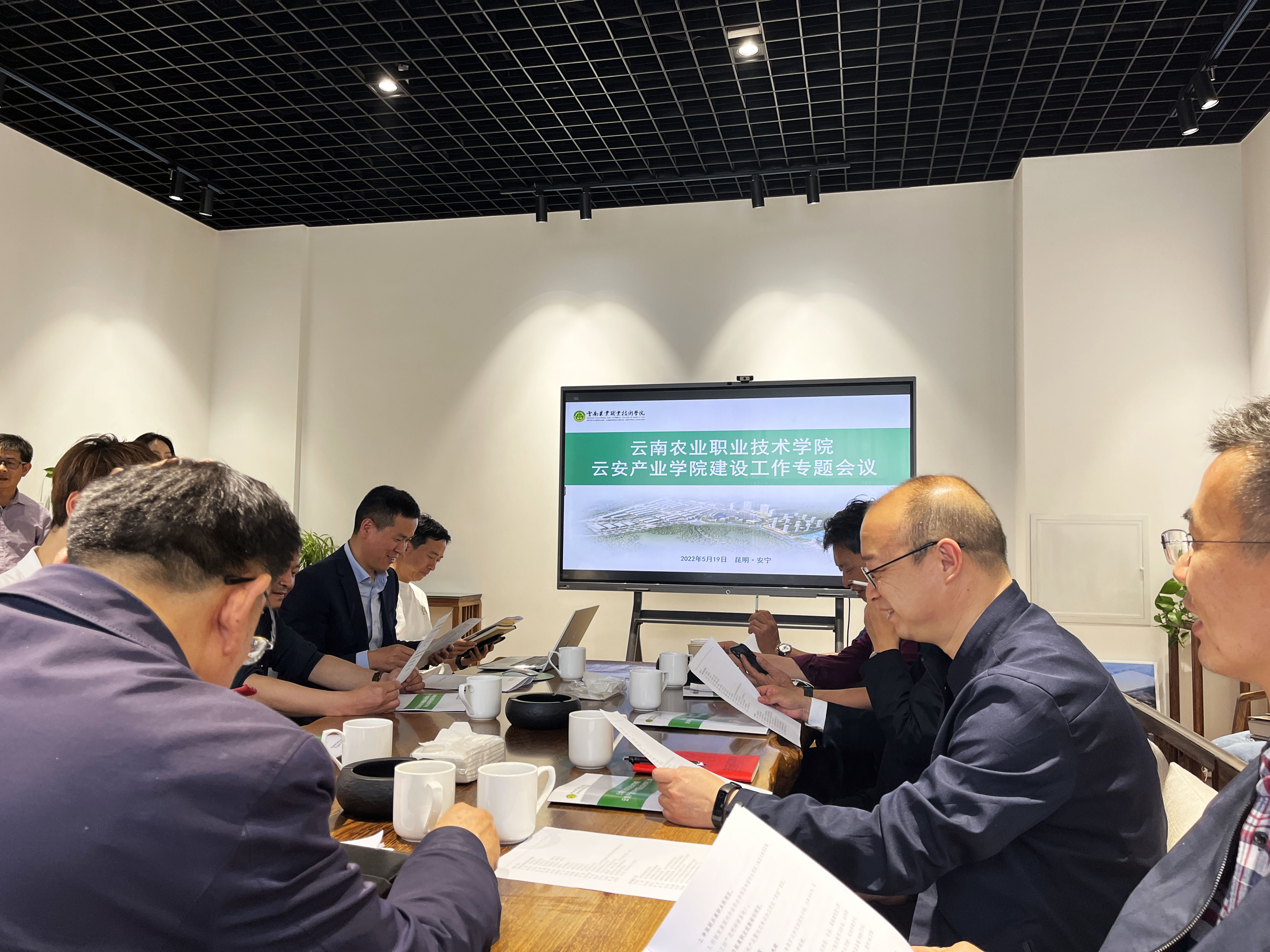 通知中心5月19日下午,學院在安寧“云安.農林天下”召開云安產業學院建設工作專題會議。學院黨政領導班子全體成員、云安投資集團總經理李艾溪、南方教育投資集團董事長蘭靖、云安建筑公司總經理李永誠出席會議,會議由學院副院長楊波主持。