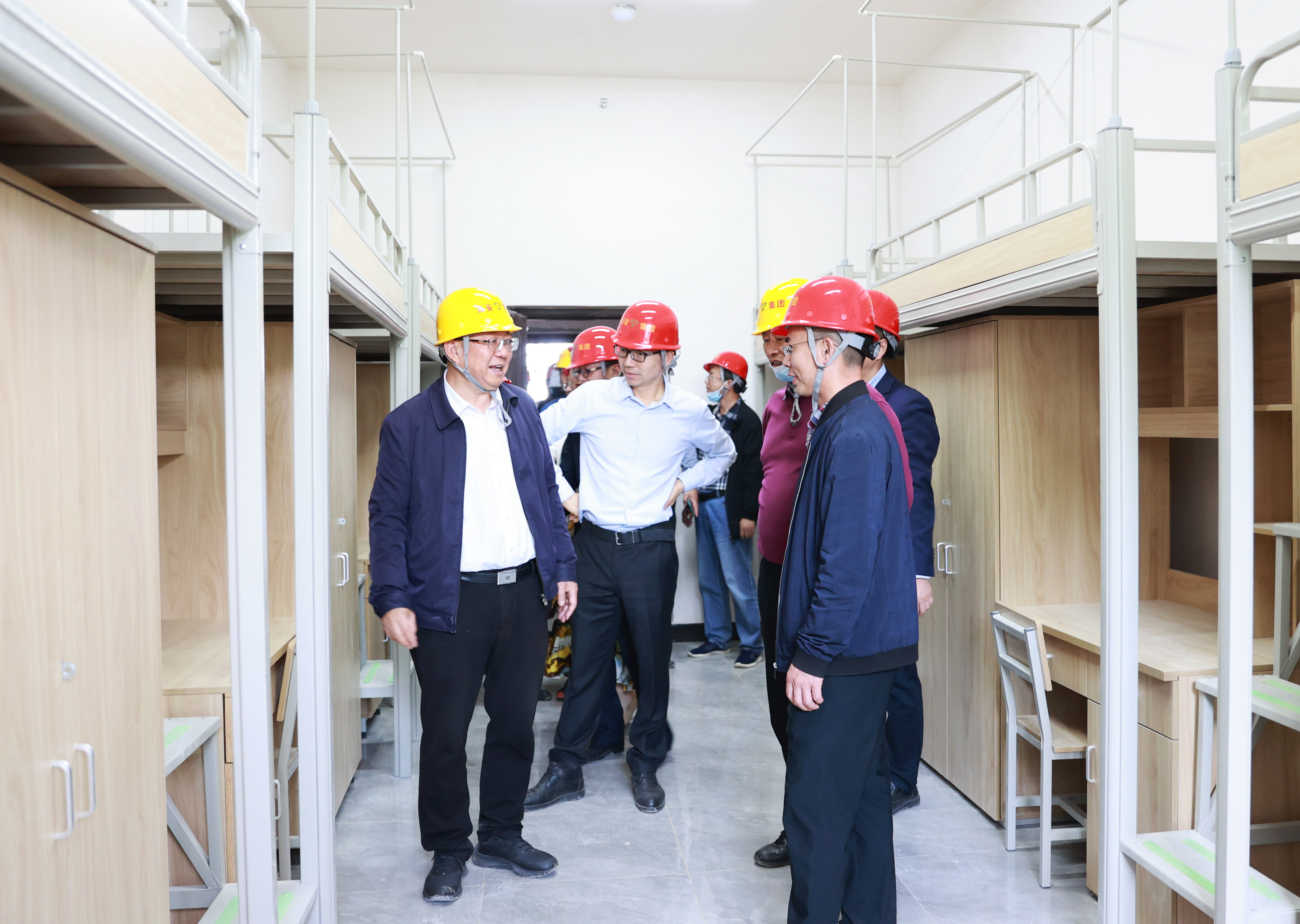 會前,參會人員踐行“一線工作法”,深入到建筑工地,實地查看了云安產業學院校舍建設工程進度。