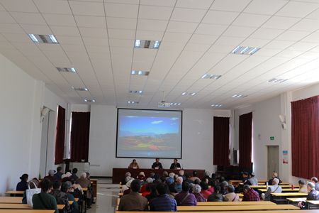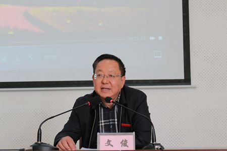 黨委崔金賦書記、文俊院長在綜合樓階梯教室向離退休教職工通報了學院發展情況。