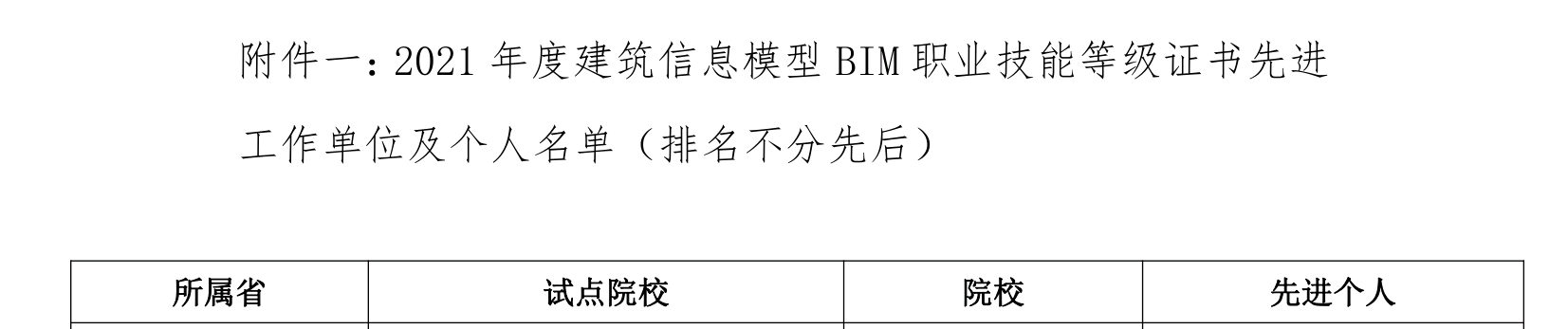 2021年,為鼓勵先進、樹立典范,經考評組織廊坊市中科建筑產業化創新研究中心研究決定,授予全國 284個試點院校“先進院校示范單位”、全國各試點院校 853名教師“年度先進個人”榮譽稱號。其中,我院榮獲“2021年度建筑信息模型 BIM 職業技能等級證書先進工作單位”;劉亮、丁磊、陳艷姣三位教師榮獲“年度先進個人”稱號。