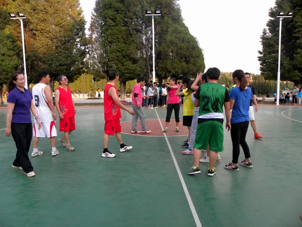 1022下午四點半,在小哨校區籃球場,學校領導和園林園藝學院學生女隊進行了一場籃球友誼賽。