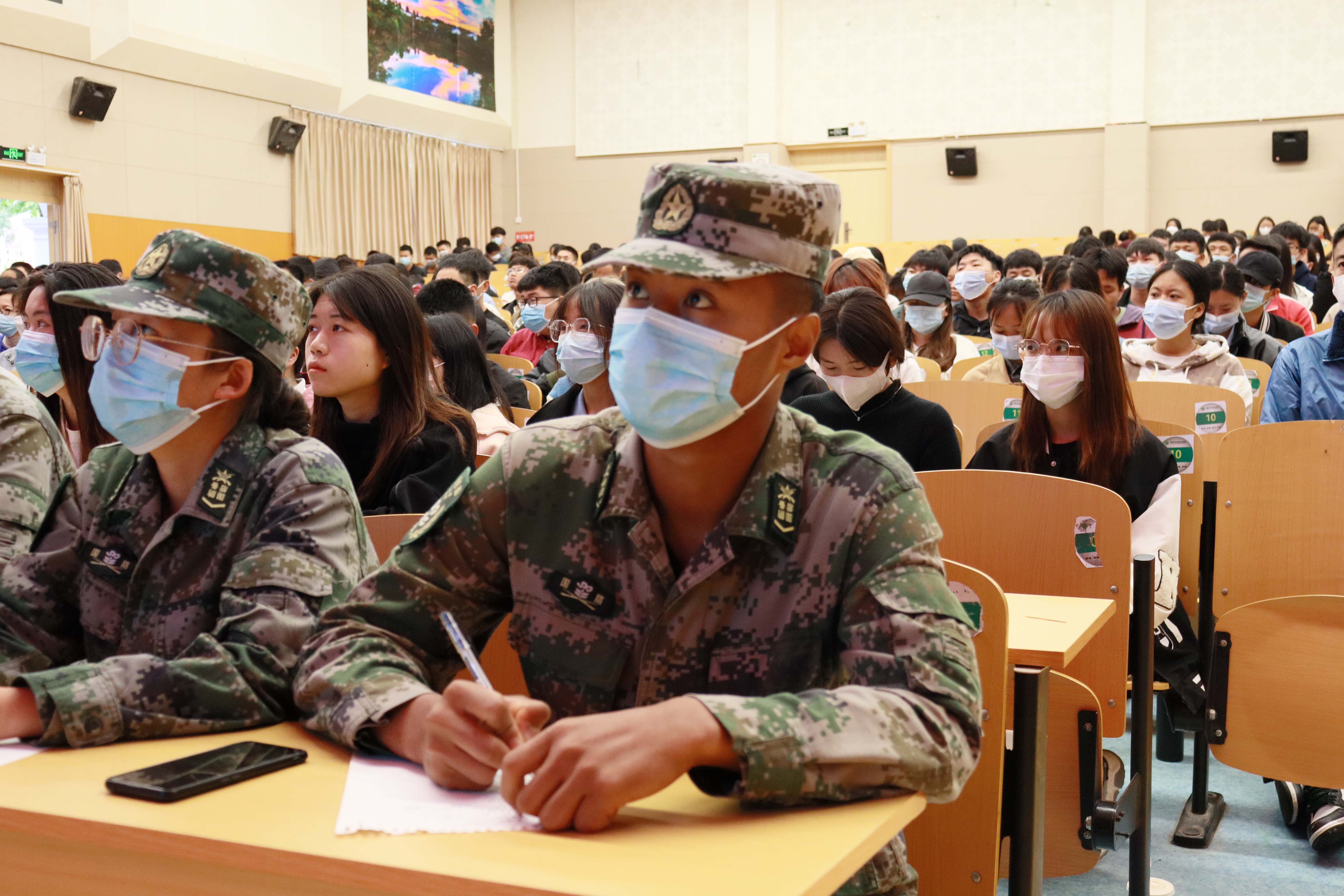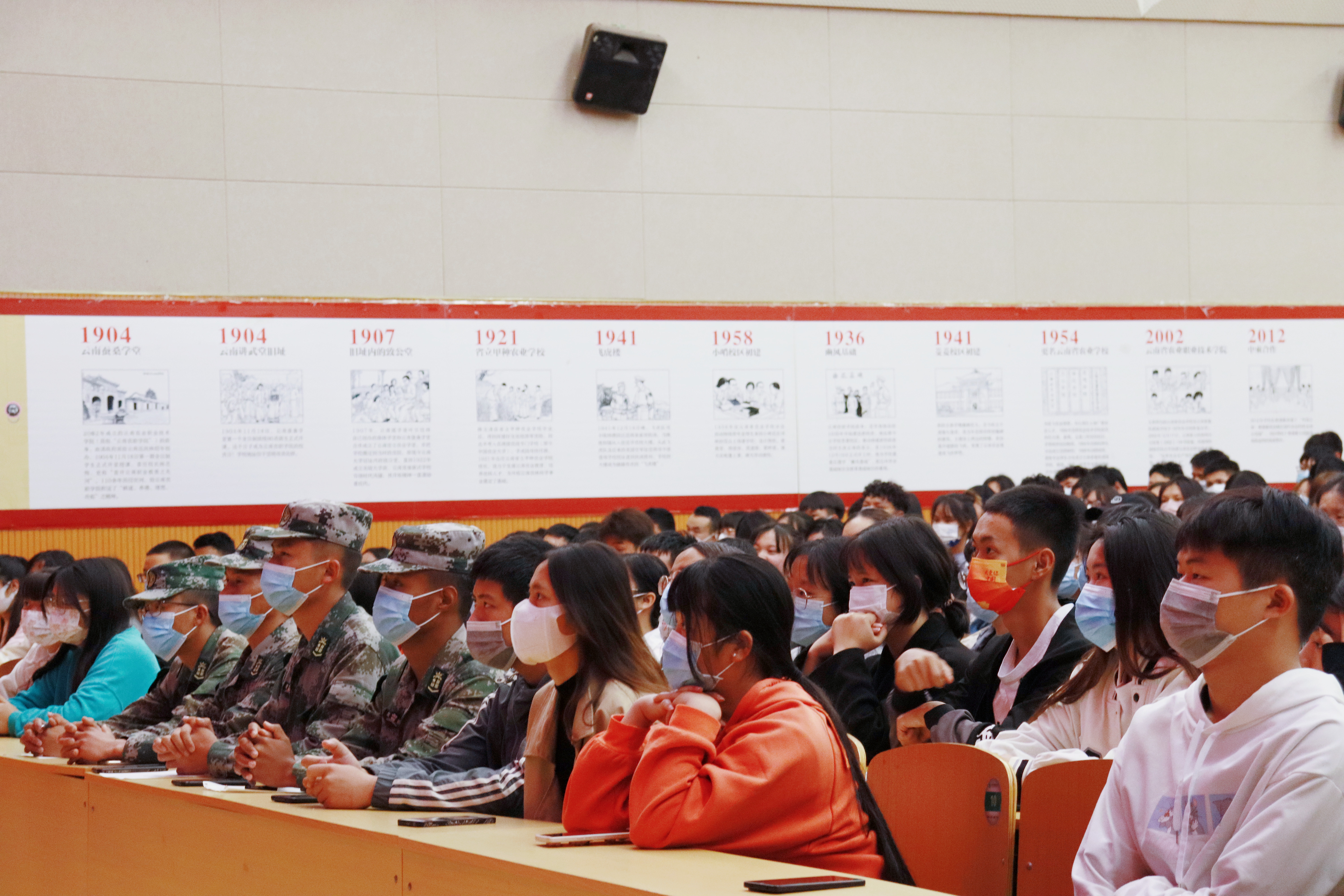 講座開始,蔡朝東老師以軍人的作風(fēng)要求師生保持良好的精神態(tài)度,用一首鏗鏘有力的師生合唱《團(tuán)結(jié)就是力量》提升師生的精氣神,活躍了會(huì)場的氛圍,拉近了彼此之間的距離。隨后,他以中國夢(mèng)為核心,闡述了“忠孝”、“使命”和“責(zé)任”的涵義,蔡朝東老師用自己的軍旅經(jīng)歷講述了什么是忠孝,他回憶對(duì)越自衛(wèi)反擊戰(zhàn)的經(jīng)歷,深情地講述了一幕幕感人至深的英雄故事,緬懷了為國捐軀的革命烈士;向我院師生們展示了戰(zhàn)士們“犧牲我一個(gè),幸福十億人”的堅(jiān)定信念,闡述了那份值得傳承的“老山精神”,老一輩軍人的革命信念和奉獻(xiàn)精神深深感染著在場的師生。蔡朝東老師語重心長地說,在新形勢(shì)下,我們要與老山戰(zhàn)士比什么? “比信念;比責(zé)任;比艱苦;比奉獻(xiàn)”。在講到107歲的烈士母親熊八娣因交通阻隔、信息不暢,一直不知她等待了65年,于1956年3月5日在四川得榮縣“古學(xué)戰(zhàn)斗”中光榮犧牲的兒子劉國忠葬于何處,終于在2021年清明節(jié)舉行的網(wǎng)絡(luò)祭掃中,通過直播方式見到了兒子的墓碑與犧牲地,知曉了兒子的事跡。老人躺在床上答謝的“軍禮”時(shí),蔡朝東老師深情地稱之為“這是最偉大的軍禮”。在場師生們紛紛報(bào)以熱烈的掌聲,流下了感動(dòng)的淚水。同時(shí),他分享了曾在大關(guān)縣當(dāng)選為中國第一個(gè)民選縣長的任職經(jīng)歷,調(diào)離時(shí)老百姓萬人空巷,十里相送的感人場面;通過自己的努力得到了群眾的認(rèn)可,用自己的經(jīng)歷和言行為大家詮釋了什么是責(zé)任。
