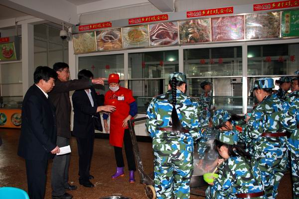 中午,由李昆處長帶隊深入軍營、食堂,了解調(diào)研同學(xué)們的就餐伙食情況;同時到宿舍看望了病情較重的同學(xué),并予以關(guān)心和問候。