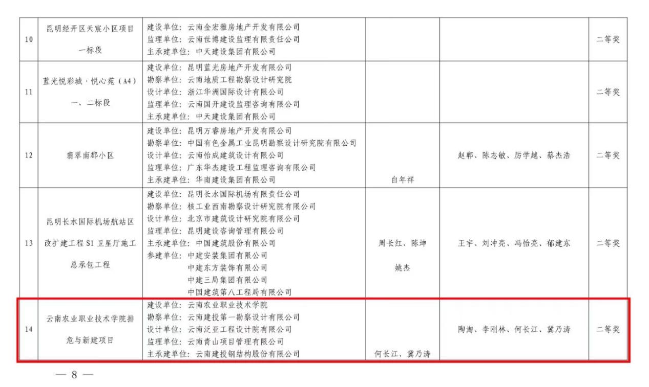 通知中心近日,云南省建筑業協會公布了“2021年度云南省優質工程獎”名單, “云南農業職業技術學院排危與新建項目”榮獲二等獎。