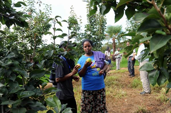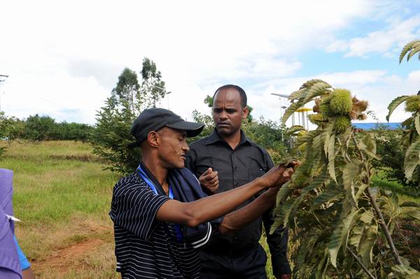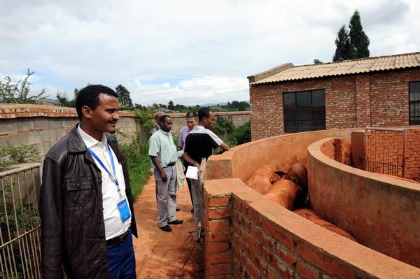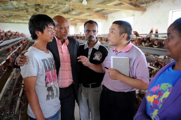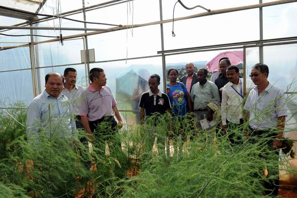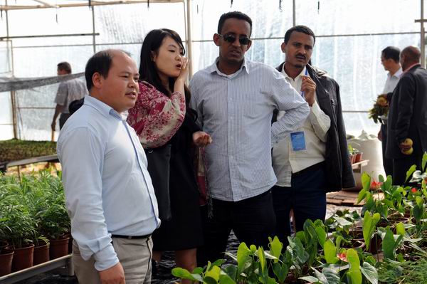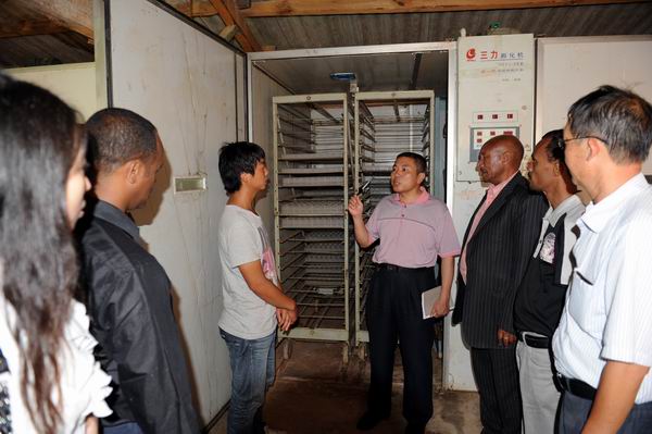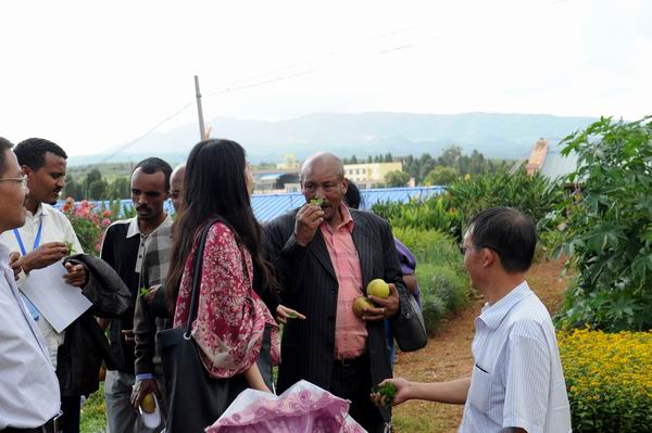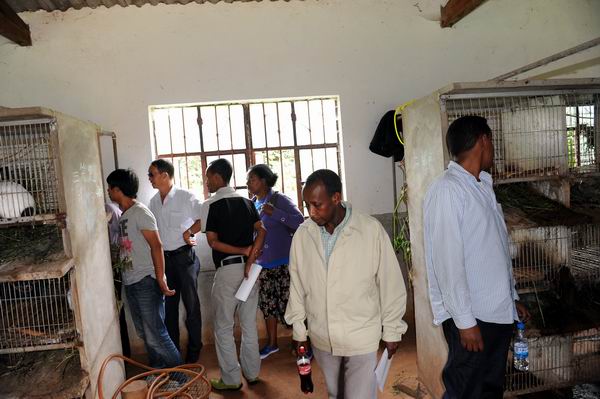 學院還為培訓班安排了實地參觀考察。9日下午,由余浩副院長陪同非洲朋友前往小哨校區農牧場參觀考察校內實訓基地。在畜牧獸醫系、園藝與園林工程系、生物工程系領導和老師的密切配合下,培訓班學員興致勃勃地參觀了養兔場、養雞場、滇陸豬擴繁場、特種養殖場,參觀考察了果樹栽培基地、蔬菜栽培基地、花卉園林基地、水稻種植基地、中草藥園等,品嘗了果樹基地的新鮮水果——梨、板栗和核桃。培訓班學員所到之處觀察細致,虛心好問,認真記錄,我院領導和老師熱情周到,有問必答,很好地展示了我院現代農業示范基地、云南省高職院校實訓示范基地的先進技術和良好的管理水平。10日,培訓班還參觀了我院校外實訓基地——位于宜良縣的雪蘭公司養牛場。