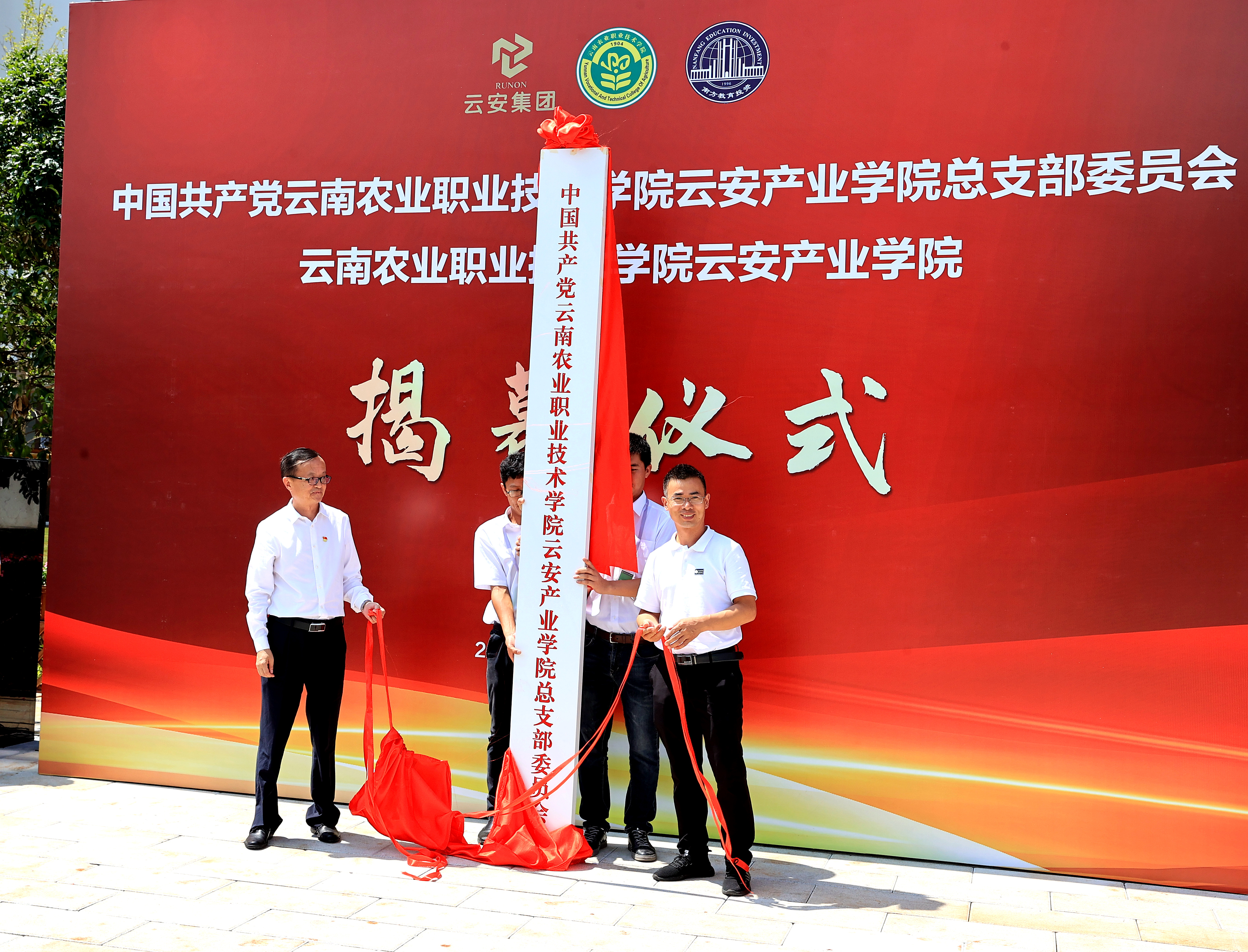 學院黨委書記文俊、院長陳太安為“云南農業職業技術學院”校名揭幕