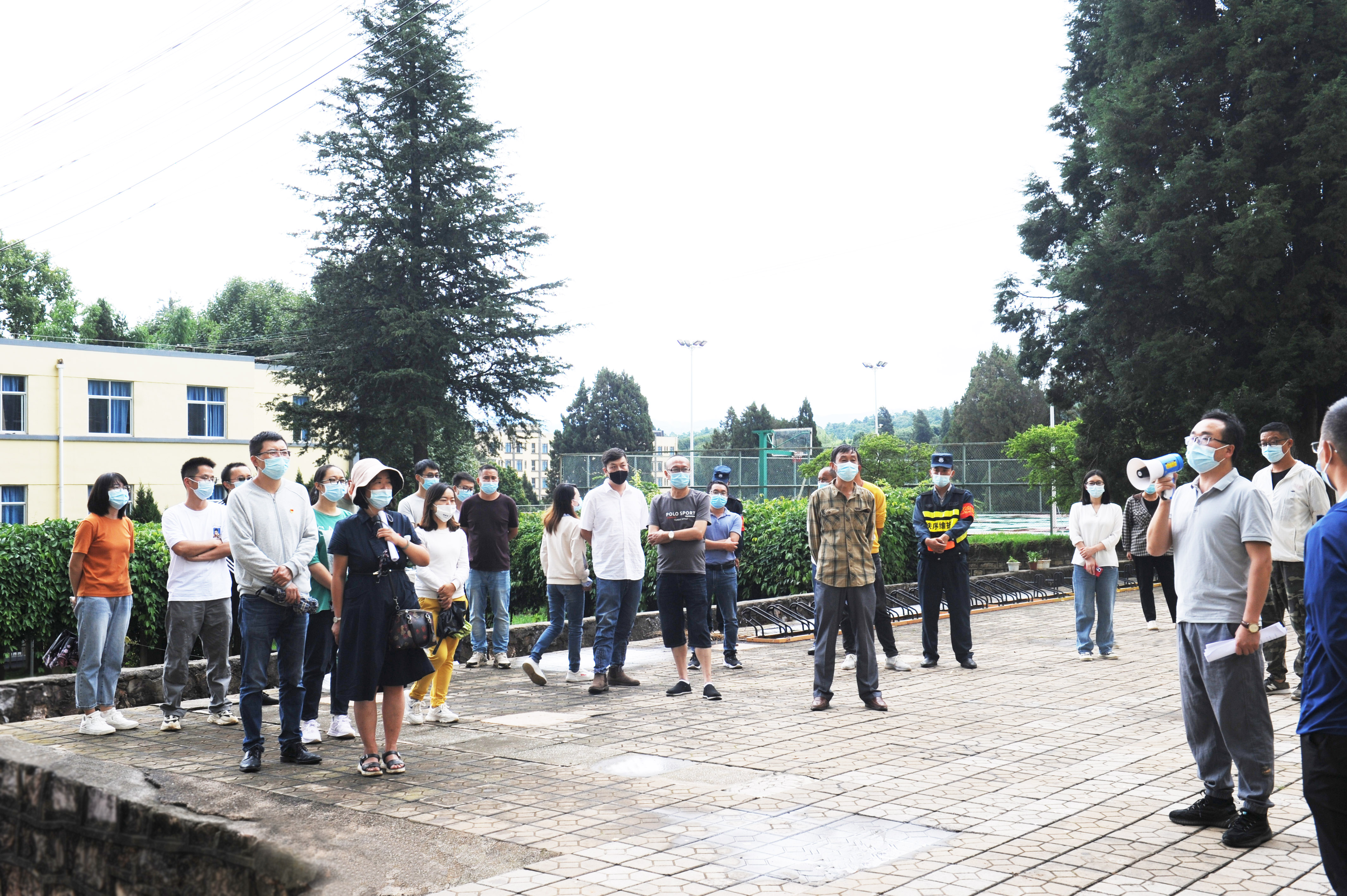 通知中心本次演練模擬學(xué)生在校門口、校醫(yī)院、宿舍樓三個(gè)場(chǎng)景發(fā)生的突發(fā)應(yīng)急處置,各場(chǎng)所演練設(shè)置均按照上級(jí)相關(guān)要求和師生返校實(shí)際情況進(jìn)行演練。校門口設(shè)立了入校安全檢查通道、“兩碼”核驗(yàn)點(diǎn)、測(cè)溫點(diǎn)、體溫復(fù)測(cè)點(diǎn)、隔離觀察點(diǎn)等,模擬學(xué)生返校報(bào)到過程中疑似病例的處置;在校醫(yī)院演練了醫(yī)務(wù)室就醫(yī)發(fā)現(xiàn)新冠肺炎疑似病例的應(yīng)急處置;在耕道院模擬校內(nèi)出現(xiàn)密接者時(shí)的應(yīng)急處置。參演人員嚴(yán)格按照《云南農(nóng)業(yè)職業(yè)技術(shù)學(xué)院新冠肺炎疫情防控應(yīng)急演練方案》,分工明確、通力配合,為快速、高效、有序做好校園疫情防控工作積累了經(jīng)驗(yàn),取得了預(yù)期效果。