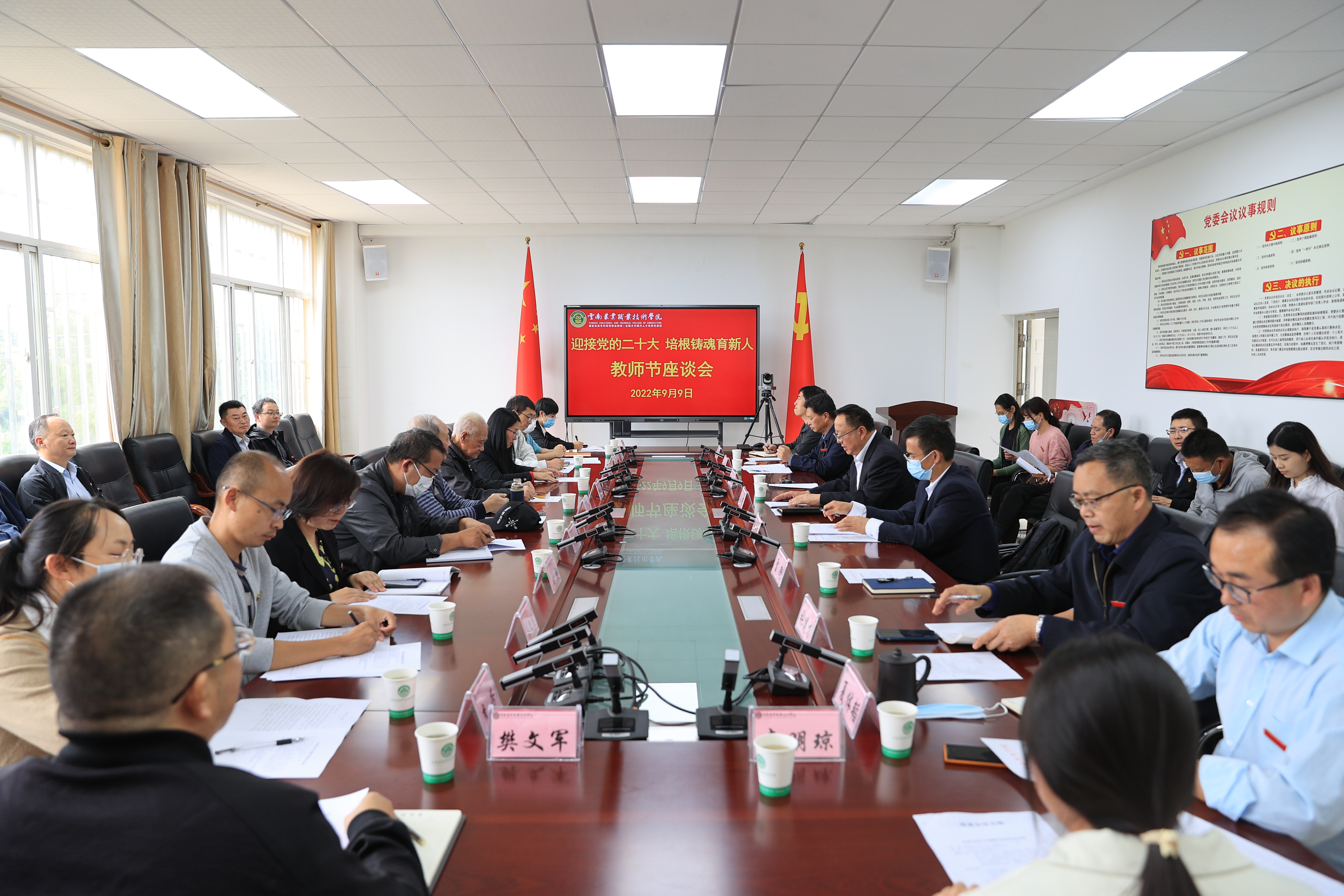 9月9日下午,學院在小哨校區綜合樓四樓會議室召開“迎接黨的二十大,培根鑄魂育新人”主題座談會。學院黨政領導、部分職能部門負責人、師生代表、離退休老領導等參加了座談會,會議由黨委副書記伍學龍同志主持。會上,文俊書記發表了熱情洋溢的致辭,他代表學院黨委班子,向全校教師致以節日的問候和美好的祝愿。文俊書記回顧了近年來學院取得的成績,指出學院綜合辦學實力顯著增強,社會影響力顯著提升,辦學規模不斷擴大,招生人數創下新高,傾注著老師們的心血,凝聚著老師們的智慧,是全體師生團結拼搏,銳意進取、攻堅克難取得的成果。面對新時代職業教育前所未有的發展機遇和挑戰,希望全體教師要守住初心,牢記“為黨育人、為國育才”使命擔當;強落實,在真抓實干中迎難而上;提能力,在常學常新中彰顯師者情懷,心懷“國之大者”,在全面建設社會主義現代化國家的新征程中勇擔培育時代新人的歷史使命,以昂揚向上的精神面貌和立德樹人的扎實行動,迎接黨的二十大勝利召開。