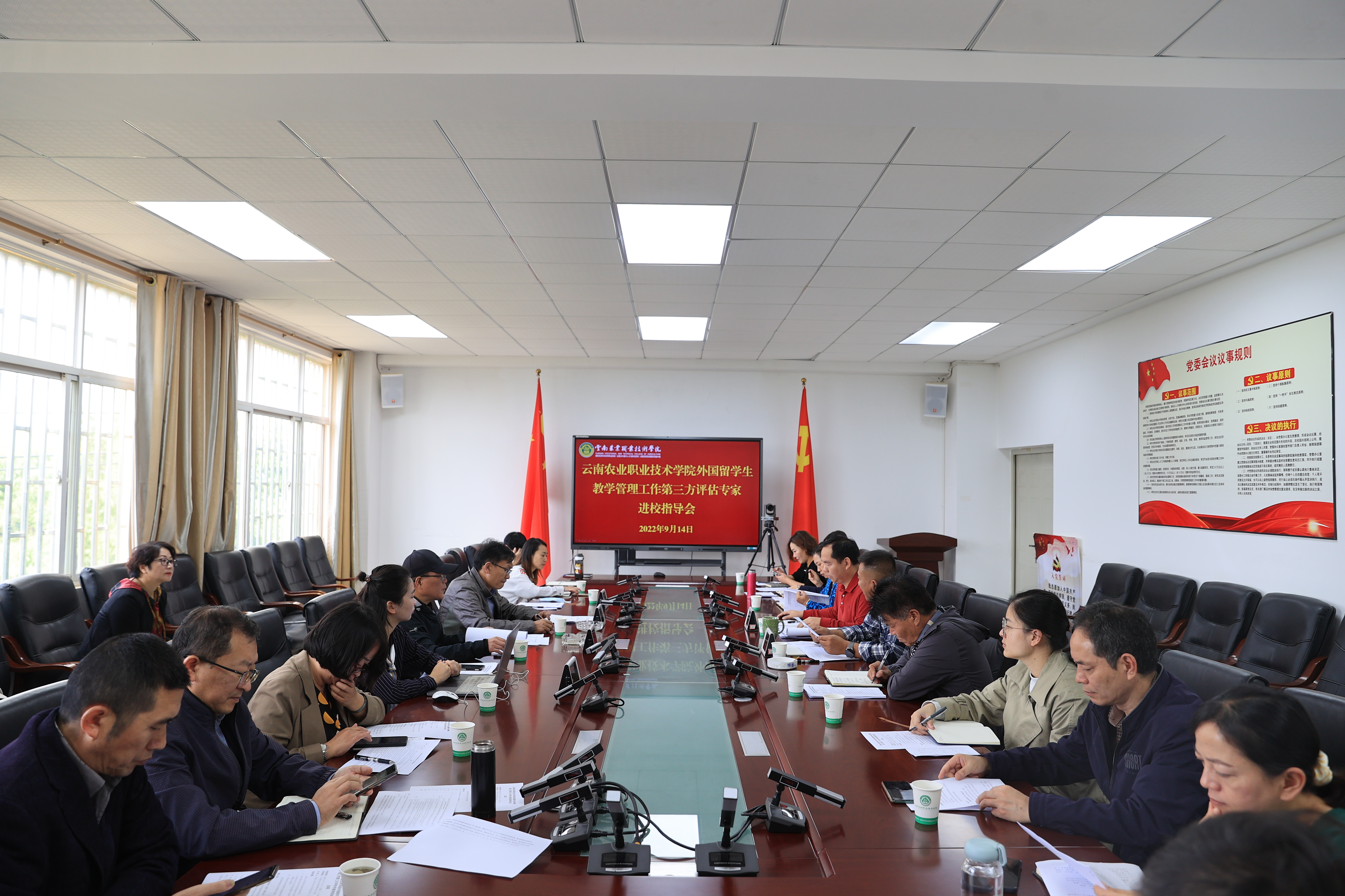 通知中心9月14日,我校在小哨校區綜合樓召開招收外國留學生教學管理評估工作專家進校指導會,云南大學漢語國際教育學院院長李偉、云南農業大學對外交流合作處處長朱耀順作為評估專家進校指導。副院長蘇華偉、我校辦公室(黨委巡察辦)、宣傳部、人事處等有關部門及農學與園藝技術學院、經濟管理學院負責人參加了會議,會議由科技與對外合作交流處負責人主持。