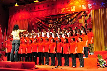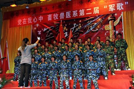 此次軍歌大賽是畜牧獸醫(yī)系慶祝建黨90周年而舉辦的系列活動(dòng)之一。大賽主要針對(duì)2010級(jí)剛參加完軍訓(xùn)的同學(xué),以班級(jí)為單位組織參賽,合唱歌曲須選擇愛(ài)國(guó)愛(ài)黨或軍營(yíng)歌曲。