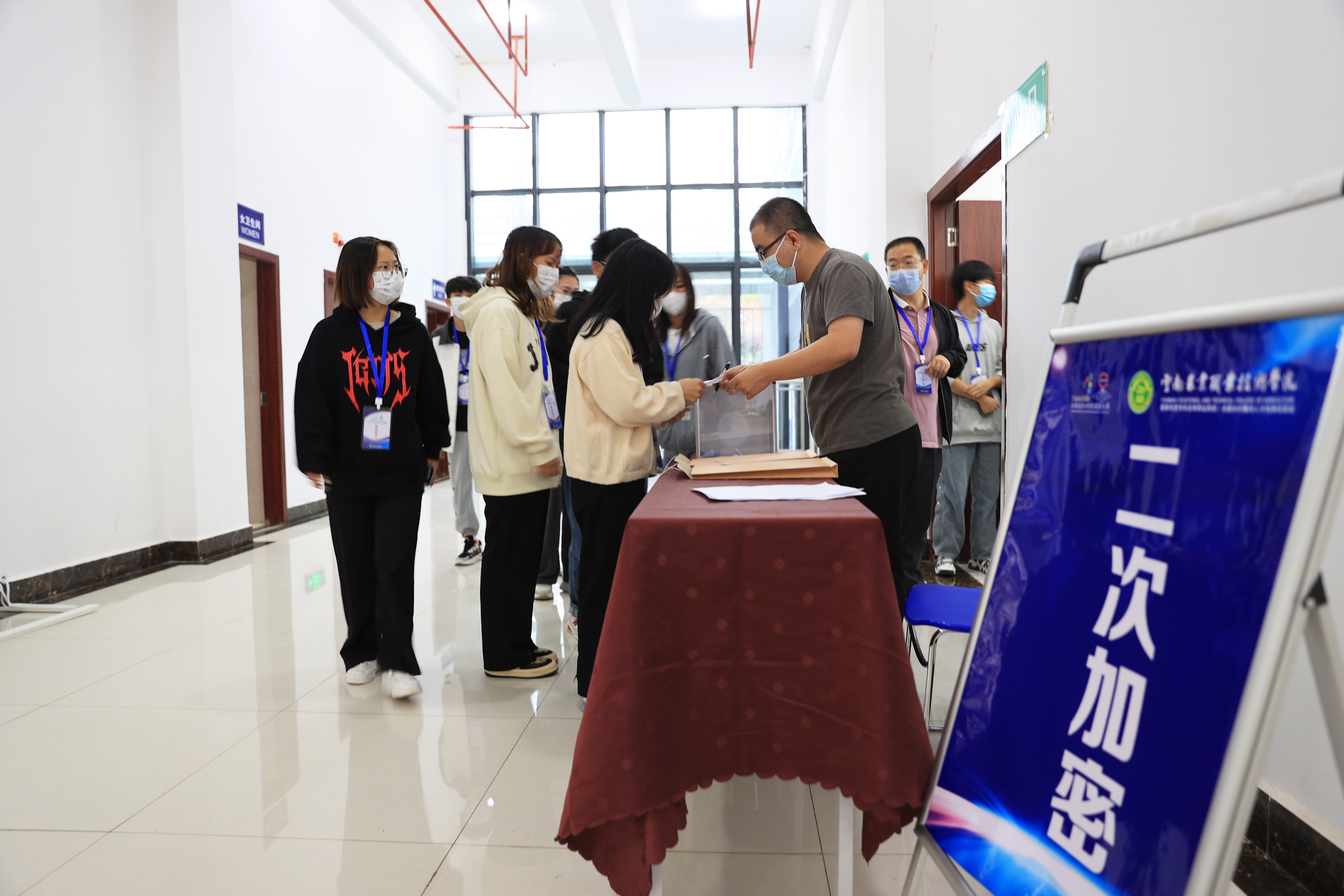 我院教務(wù)處處長邵權(quán)宣布比賽開始后,各參賽隊伍有序前往競賽場地,開始檢錄并開展第二次抽簽加密、抽賽區(qū)和工位號。校領(lǐng)導(dǎo)來到賽場,視察賽場情況,并對賽事的進行作出了指導(dǎo)。隨后,來自全省18所院校32支參賽隊伍投入到緊張激烈的比賽中。