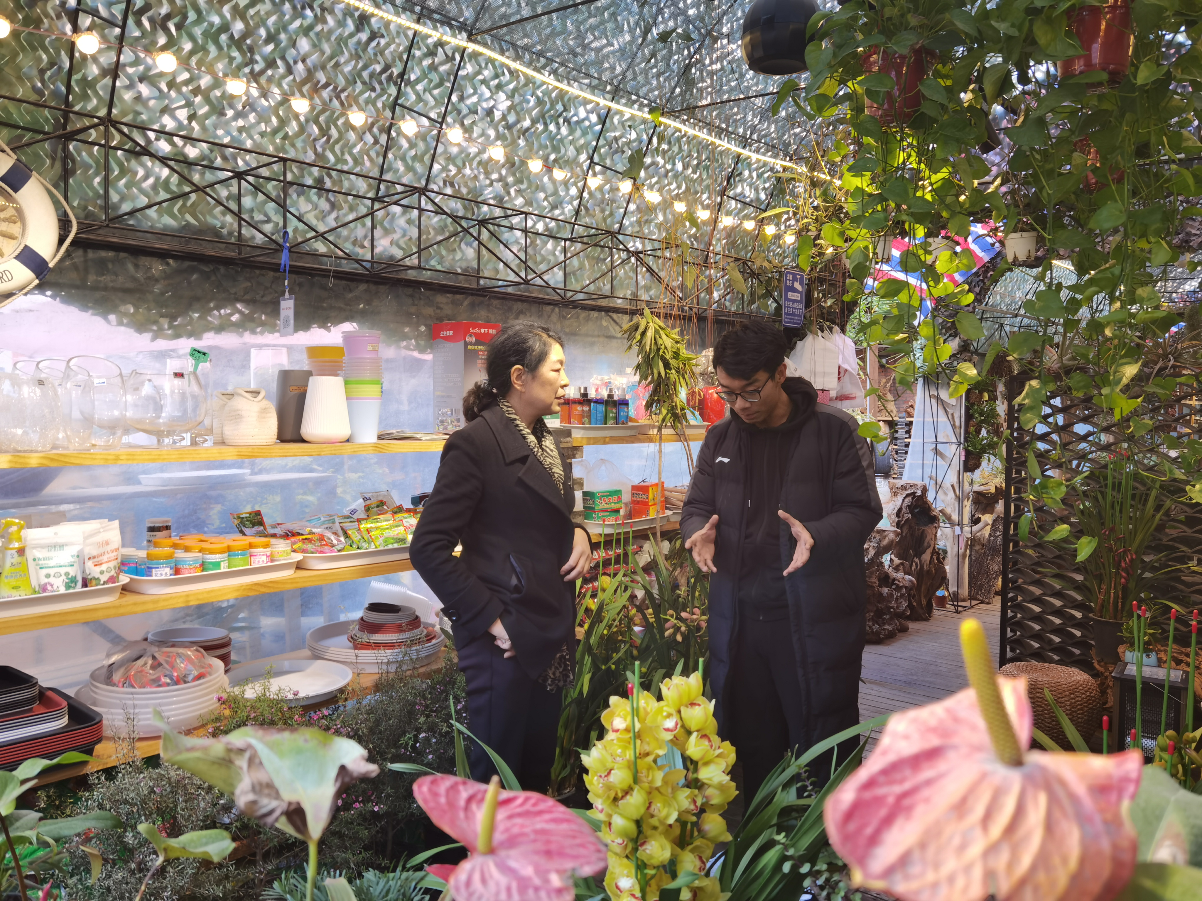 隨后,調(diào)研組一行參觀了產(chǎn)教聯(lián)盟民族團結(jié)進步智創(chuàng)共建基地、產(chǎn)教聯(lián)盟少數(shù)民族綠色食品展銷專柜、我院民族團結(jié)進步示范廣場等,聽取了我院產(chǎn)教聯(lián)盟負責(zé)人在整合資源、凝聚合力,積極搭建“校、政、企、地”合作橋梁,探索少數(shù)民族農(nóng)業(yè)產(chǎn)業(yè)品牌文化和推動建設(shè)我院民族團結(jié)示范進步廣場的工作匯報。并參觀了云南省新農(nóng)人創(chuàng)新創(chuàng)業(yè)學(xué)院基地,詳細了解了產(chǎn)教聯(lián)盟“禮贊云南”民族特色商品的銷售情況。