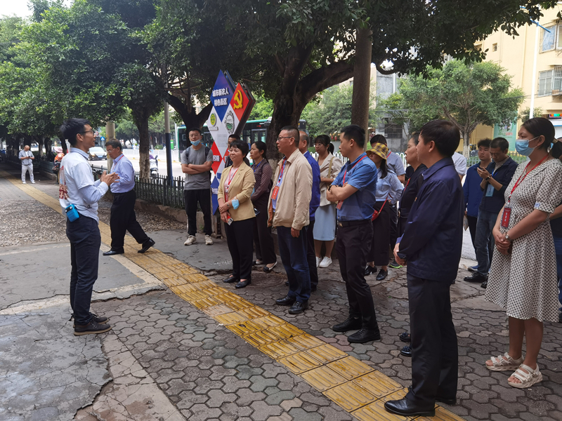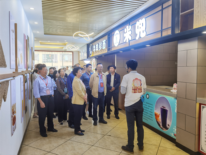 調研工作分為兩個階段,在第一階段中,調研組一行在產教聯盟的帶領講解下通過實地走訪的方式調研了我院產教聯盟打造的少數民族產品孵化平臺、少數民族文化設計中心、少數民族人才孵化平臺等。在第二階段中,驗收組一行在產教聯盟大廳聽取了產教聯盟負責人從黨建引領民族團結、如何通過職教助力鑄牢中華民族共同體意識,如何在鄉村振興的大旗下推動各民族共同團結奮斗的具體做法等三個方面介紹了我院產教聯盟在推動五華區民族團結創建所做的工作。