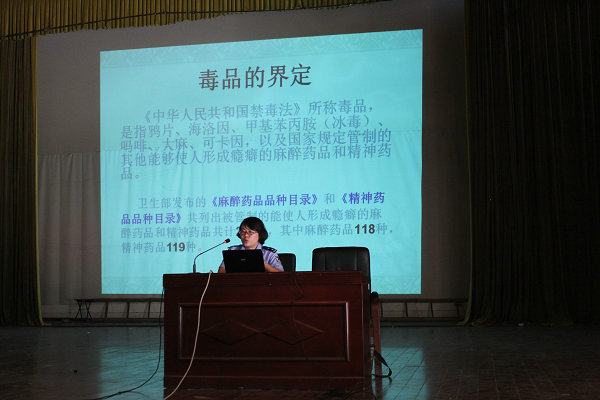 王警官首先介紹了毒品的種類,以大量的案例,講述了毒品對青年學生、對家庭、對社會帶來的危害。告誡學生要遵守國家法律法規,并語重心長地教學生如何遠離毒品,在不同場所學會自我保護。