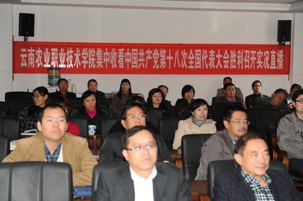 11月8日上午9:00,學院組織黨員干部在茭菱校區辦公樓三樓報告廳集中收看黨的第十八次全國代表大會開幕式,認真聆聽胡錦濤總書記所作的十八大工作報告。學院黨委書記崔金賦、院長彭志遠等領導帶領干部、教師100余人共同觀看。
