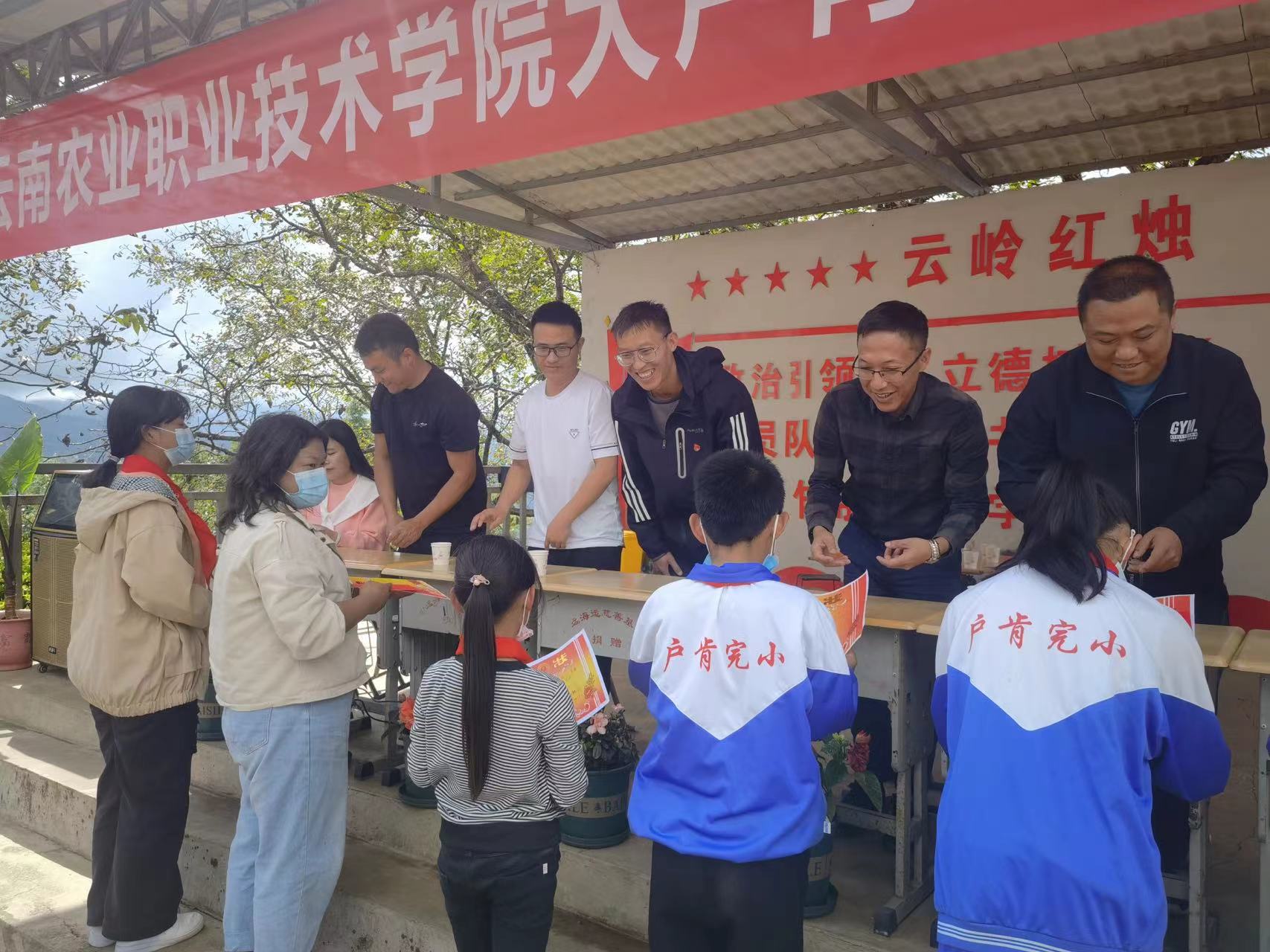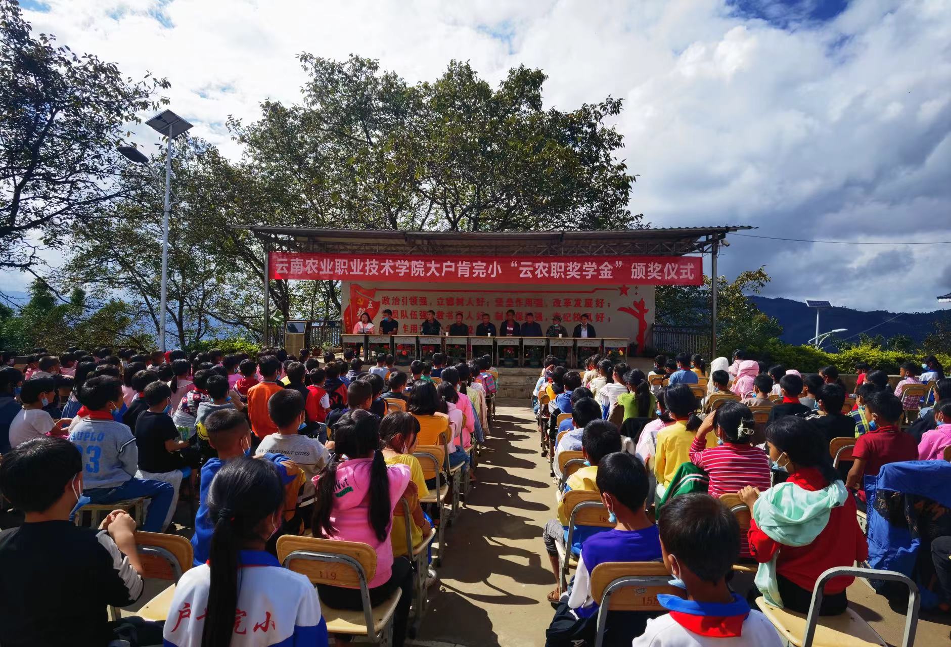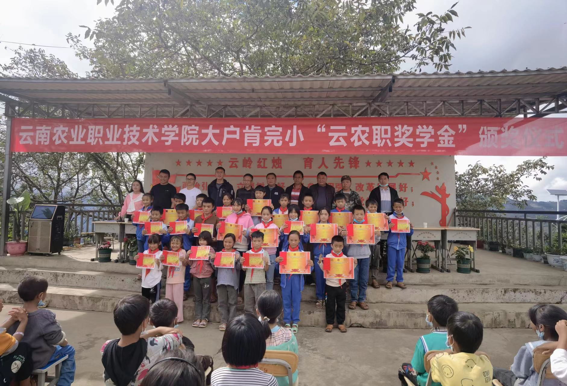 自2015年以來,學院黨委積極堅持落實教育幫扶措施,設立“云農職獎學金”幫扶龔家寨村小學。為助力鄉村振興、教育振興,2022年開始,在大戶肯完小同步設立“云農職獎學金”。旨在鼓勵大興鄉龔家寨小學、大戶肯完小品學兼優的同學。
