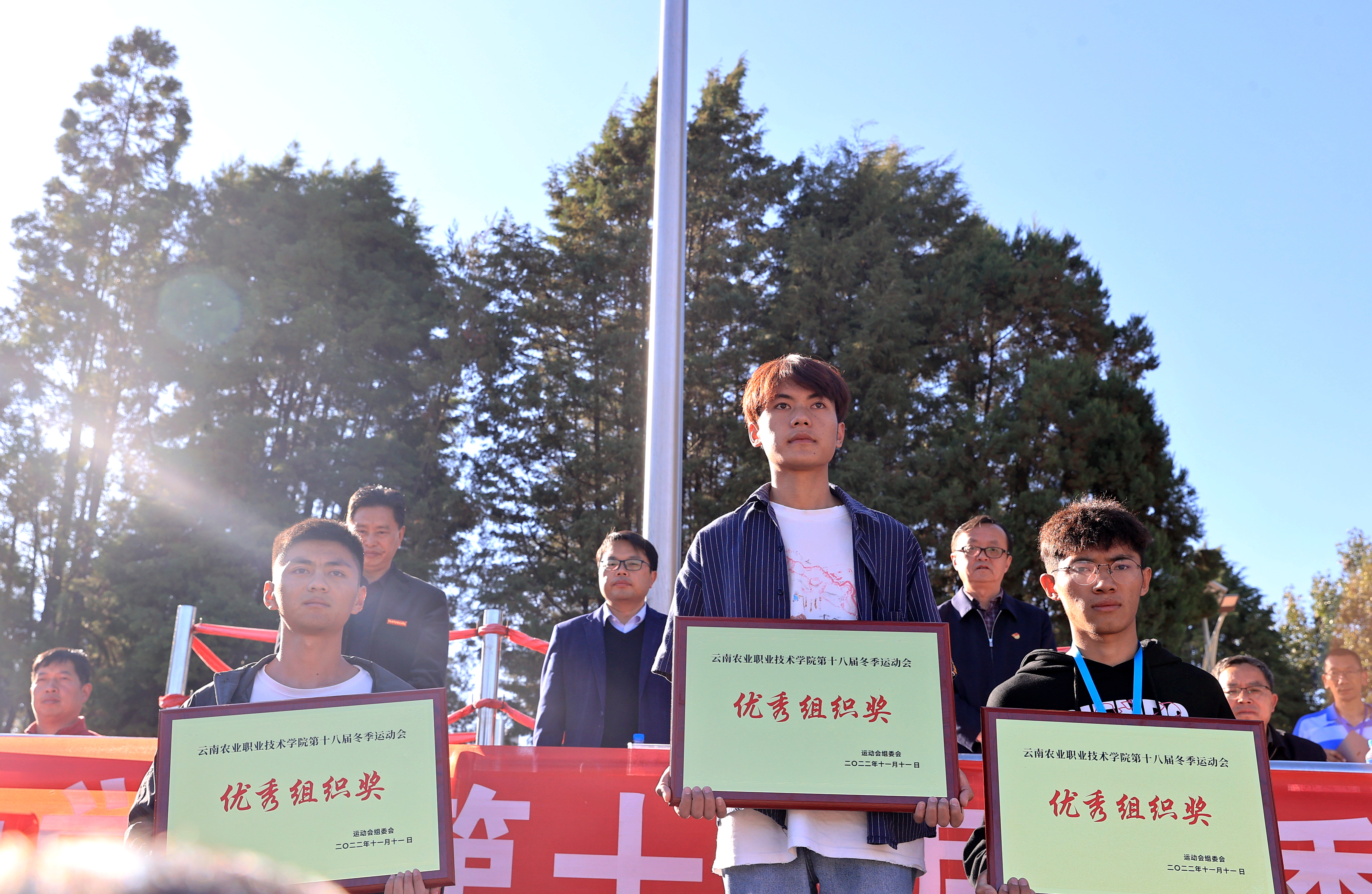 通知中心11月11日下午,經過三天的激烈角逐,云南農業職業技術學院第十八屆冬季運動會在小哨校區田徑運動場圓滿閉幕!組委會全體成員、全體運動員、裁判員、部分教職工參加了本次閉幕式,閉幕式由副院長田應華主持。