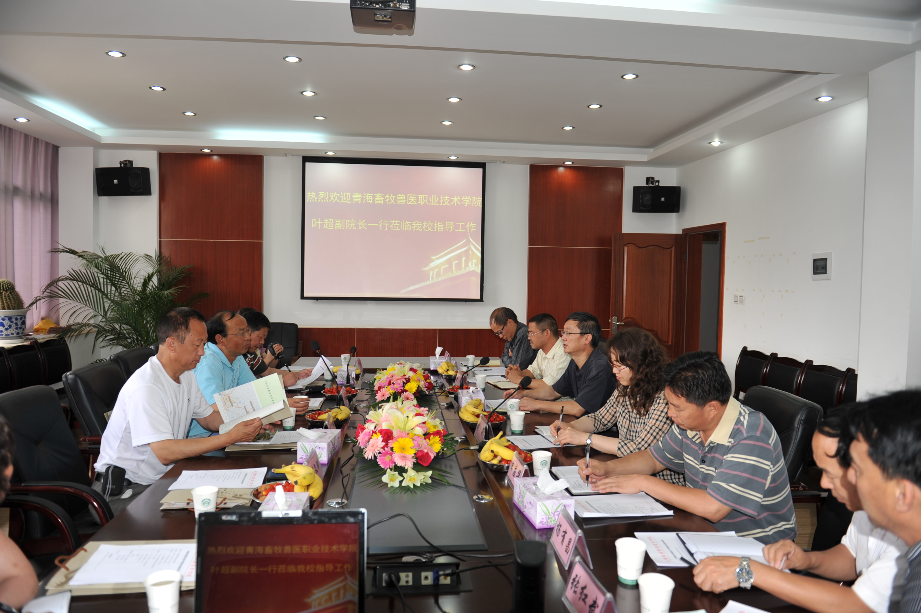 2011年6月16日下午3點,在小哨校區行政樓二樓會議室,青海畜牧獸醫職業技術學院葉超副院長一行與畜牧獸醫系、生物工程系、園藝與園林工程系相關負責人召開座談會。畜牧獸醫系趙躍主任、畜牧獸醫系法林榮副主任、生物工程系黨總支書記董文紅、生物工程系陶艷芳副主任、園藝與園林工程系許邦麗主任、園藝與園林工程系陳志遠副主任參加了座談,座談會由黨(院)辦主任凌軍主持。