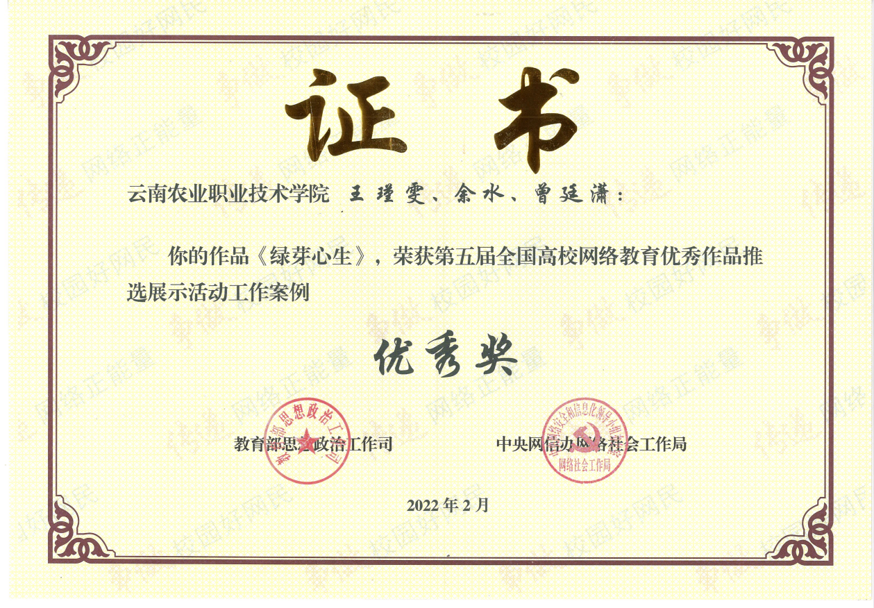 此前,經(jīng)學院推薦、專家評選以及公示環(huán)節(jié),該案例已在第五屆云南省大學生網(wǎng)絡(luò)文化節(jié)和高校網(wǎng)絡(luò)教育優(yōu)秀作品推選展示活動中榮獲工作案例一等獎,被選送參加上述由教育部思想政治工作司主辦的第五屆全國高校網(wǎng)絡(luò)教育優(yōu)秀作品推選展示活動。