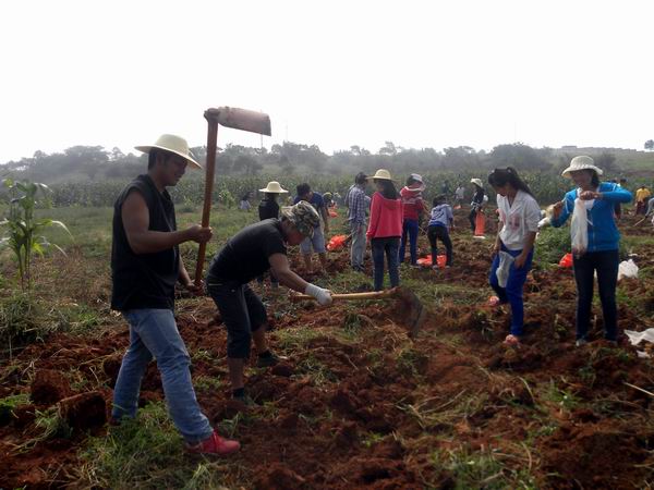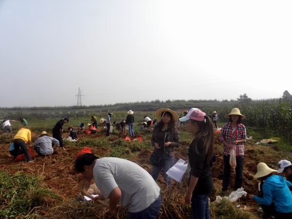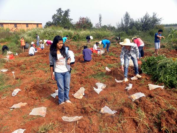 金秋時節,生物工程系校內實訓基地的馬鈴薯成熟了。9月23日,在賴麗芳、張蘭芬等教師的指導下,2012級種子生產與經營一班、2012級作物生產技術一班、二班的近百名同學共同努力,完成了近3畝29種馬鈴薯“品種產量對比試驗”的采收工作,馬鈴薯畝產達2噸。(生物工程系供稿)
