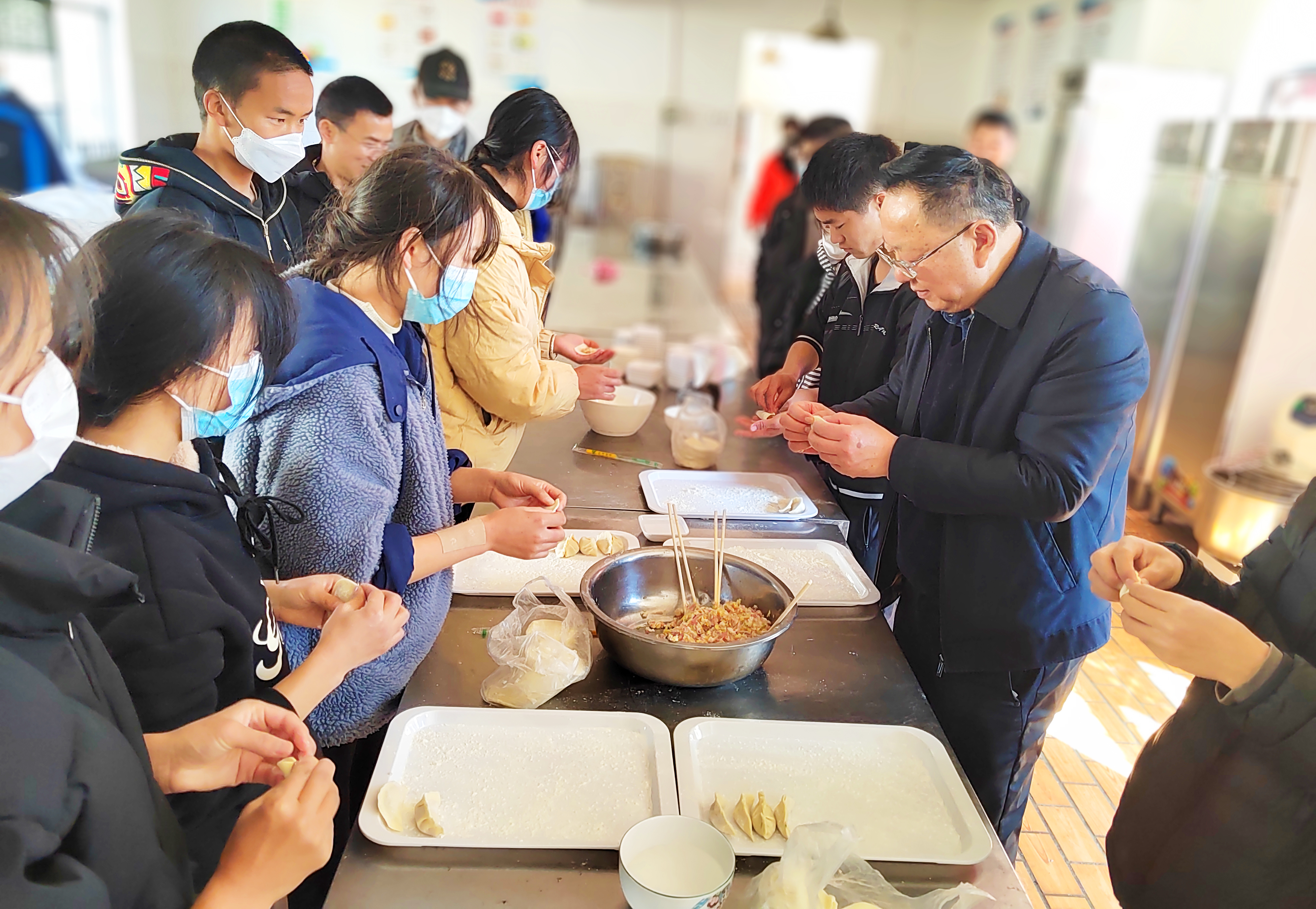 為了讓留校同學感受到過年的溫馨,學院做了精心準備,讓留校同學在學校也能體會到年的味道、家的溫暖,師生們共同包餃子、寫對聯、貼對聯、放炮仗,共享團圓飯,感受濃濃的年味,喜迎兔年新春。