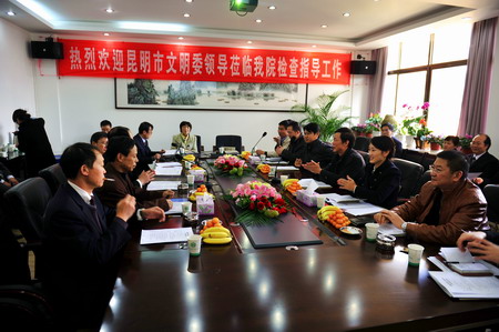 通知中心檢查分三個組同時進行。茭菱校區四樓會議室舉行的匯報會上,學院黨委副書記趙剛同志從12個方面全面總結了我院精神文明創建工作。農業廳機關黨委副書記王俊秀同志及龍翔辦事處、五華區文明辦的領導對我院申辦市級文明單位進行了慎重而熱情的推薦。最后,昆明市文明辦的領導從四個方面對我院精神文明創建工作進行了高度評價:一是圍繞為“三農”服務的中心,服務大局,指導思想清晰;二是突出重點,分類指導,創建目標明確;三是創新機制,工作扎實;四是活動豐富,特色鮮明,工作效果顯著。匯報會由學院副院長何明東同志主持,趙莉副院長、俞浩副院長、學院全體中層正職領導及黨委宣傳部全體成員參加了匯報會。