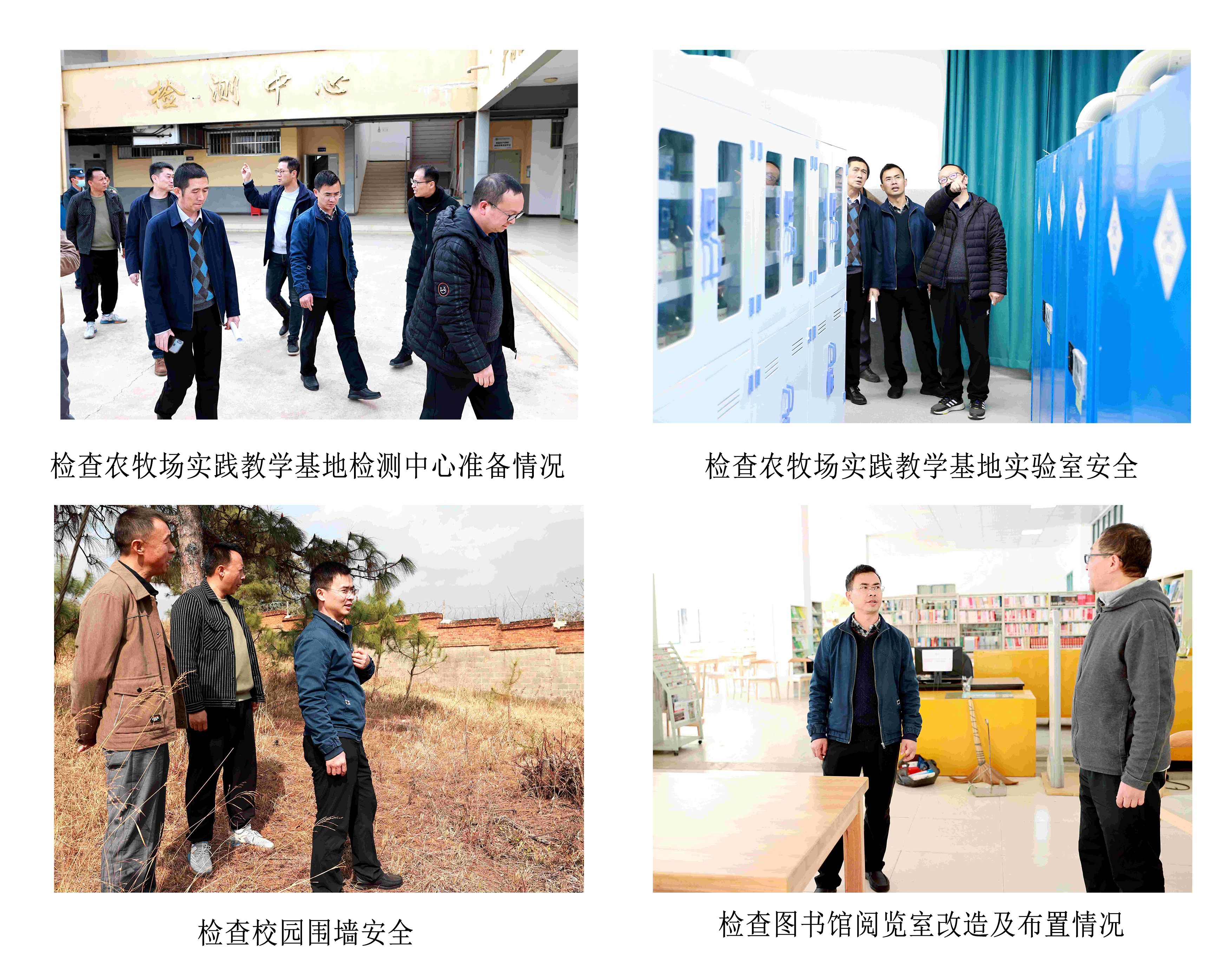 現(xiàn)場檢查主要對入校大門通道、健康驛站、校醫(yī)院、學(xué)生宿舍、食堂、閱覽室、農(nóng)牧場實踐教學(xué)基地等進(jìn)行實地查看,對學(xué)生返校服務(wù)保障工作及校園安全工作準(zhǔn)備情況進(jìn)行檢查指導(dǎo)。伍學(xué)龍副書記要求,要按照孫春蘭副總理2月6日到北京大學(xué)等學(xué)校調(diào)研時的指示要求,發(fā)揮學(xué)院校醫(yī)院、健康驛站等作用,動態(tài)儲備藥品物資,加強(qiáng)師生健康監(jiān)測和健康管理,持續(xù)加強(qiáng)心理健康教育和疏導(dǎo),營造生動活潑、健康向上的校園氛圍。各有關(guān)部門要按照學(xué)院《2023年春季學(xué)期返校方案》要求,責(zé)任到人,牢牢守住校園安全穩(wěn)定底線,毫不放松防范意識,優(yōu)化落實好校園疫情防控舉措,以更深、更細(xì)、更安全、更高標(biāo)準(zhǔn)做好開學(xué)準(zhǔn)備工作。