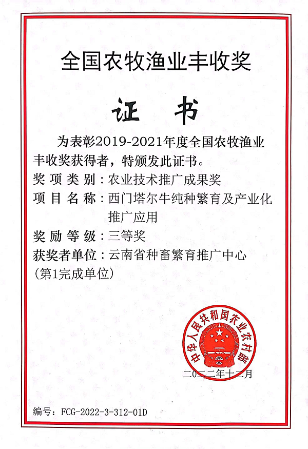 下一步,我院種畜繁育推廣中心將繼續開展實施西門塔爾牛純種繁育供種以及凍精改良產業化推廣應用,提升肉牛群體質量和養殖經濟效益,助力我省縮短同發達省區的差距,助力鄉村振興。(云南省種畜繁育推廣中心種牛場 供稿/文:和嘉榮/圖:劉紹貴/一審:劉紹貴、二審:唐麗群、三審:楊筱瑩/一校:和嘉榮、二校:唐麗群、三校:楊筱瑩/責任編輯:唐麗群)