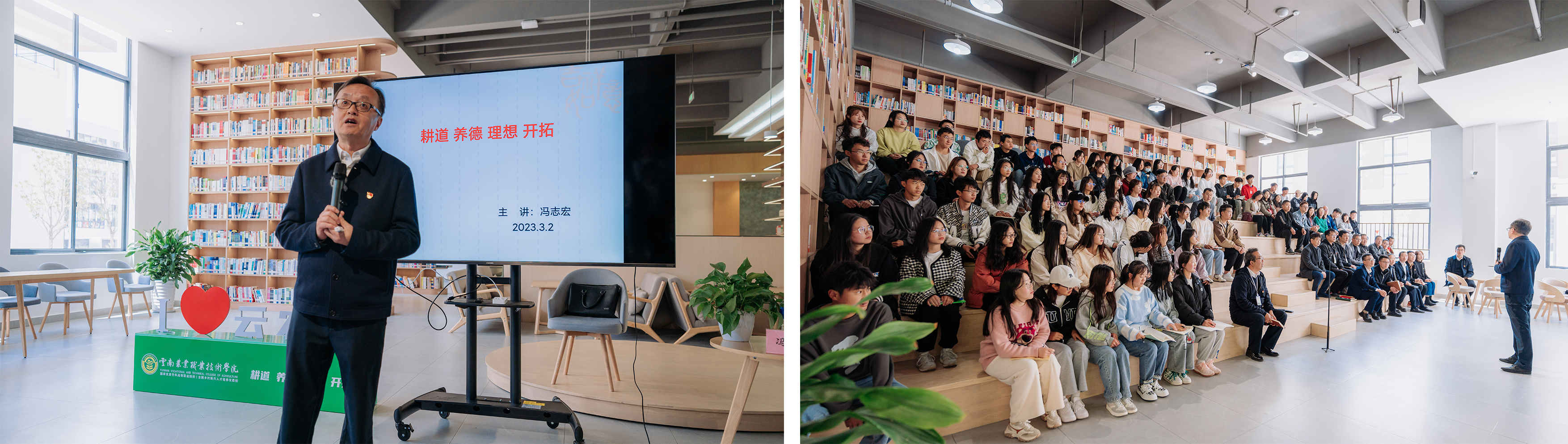 同時,紀委書記馮志宏在圖書館為云安產業學院的部分師生開展校史專題講座,講述了學校悠久的辦學歷史和光榮革命傳統,增進了云安產業學院的師生對學校的認同感和自豪感,發揮了校史育人作用。