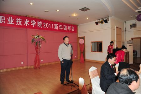 黨委書記崔金賦、院長彭志遠代表學院黨政在團拜會上向全體教職員工發表了熱情洋溢的新年致辭,大家對院領導的祝福、關心、問候報以熱烈的掌聲。黨委副書記趙剛、副院長何明東、副院長趙莉、副院長俞浩等院領導一同參加了團拜會。