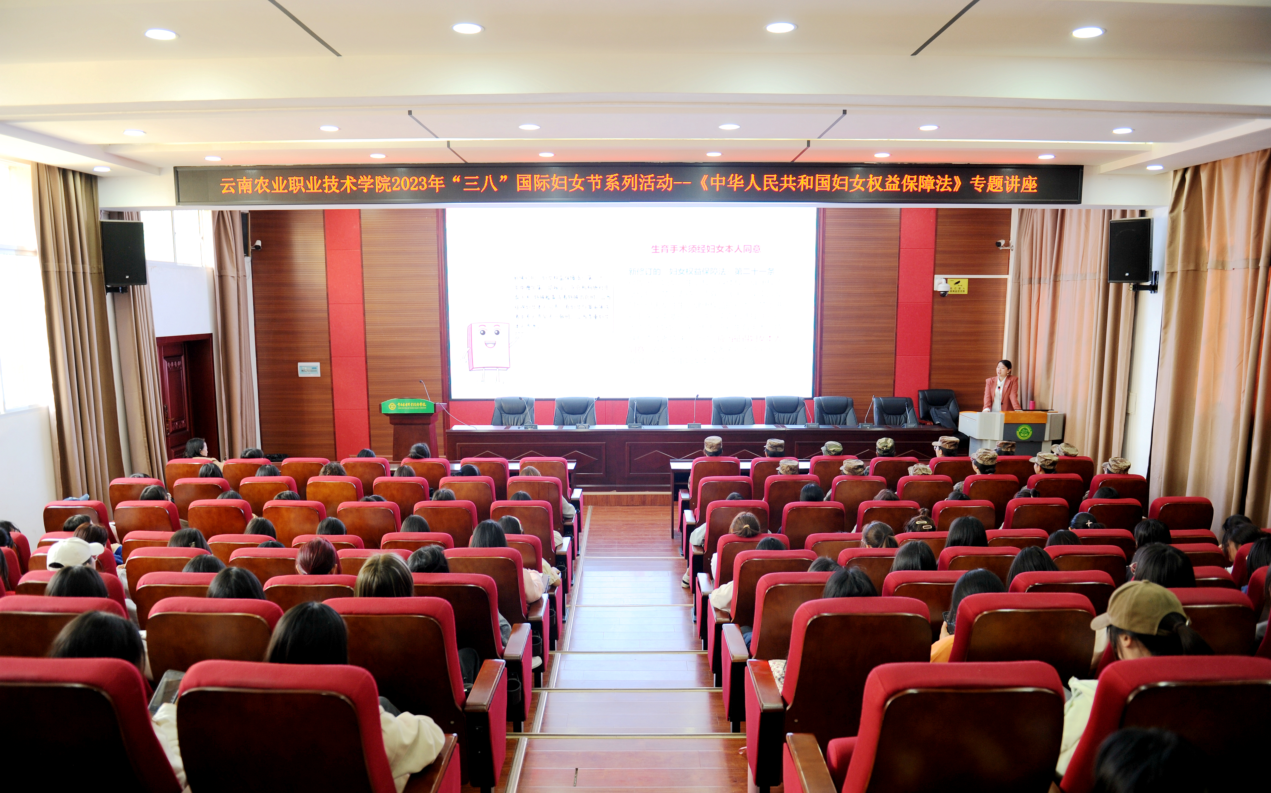 為貫徹落實習近平總書記關于保障婦女權益方面的重要指示,增強女性群體的法制思維和維權意識,3月8日下午,學院婦聯邀請云南民定律師事務所副主任、云南省律師協會第八屆理事會婦女權益及未成年保護法律業務研究會副主任林啟鳳律師到校,為女教職工和女學生開展主題為《新婦女權益保障法亮點解讀》的知識講座?!吨腥A人民共和國婦女權益保障法》是事關婦女事業長遠發展的重要法律,是我國人權保障法律體系的重要組成部分,講座中,林啟鳳律師圍繞《婦女權益保障法》修訂背景、修訂后的亮點、婦女享有的權益等三個方面,結合案例及相關法律規定,闡述了女性在婚姻、家庭、工作和生活中經常會遇到的婚姻家庭權益、財產分割、家庭暴力、人身權利等相關法律問題,并鼓勵婦女要多從法律角度出發,學會運用法律武器維護自身合法權益。