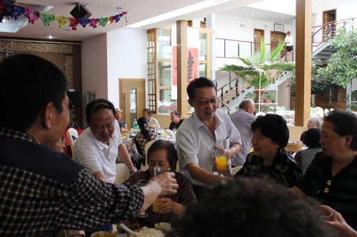 晚宴上,崔書記在祝酒詞中祝福道:希望老同志們的生活就像這杯中的美酒紅紅火火,祝各位老同志身體健康、闔家幸福!