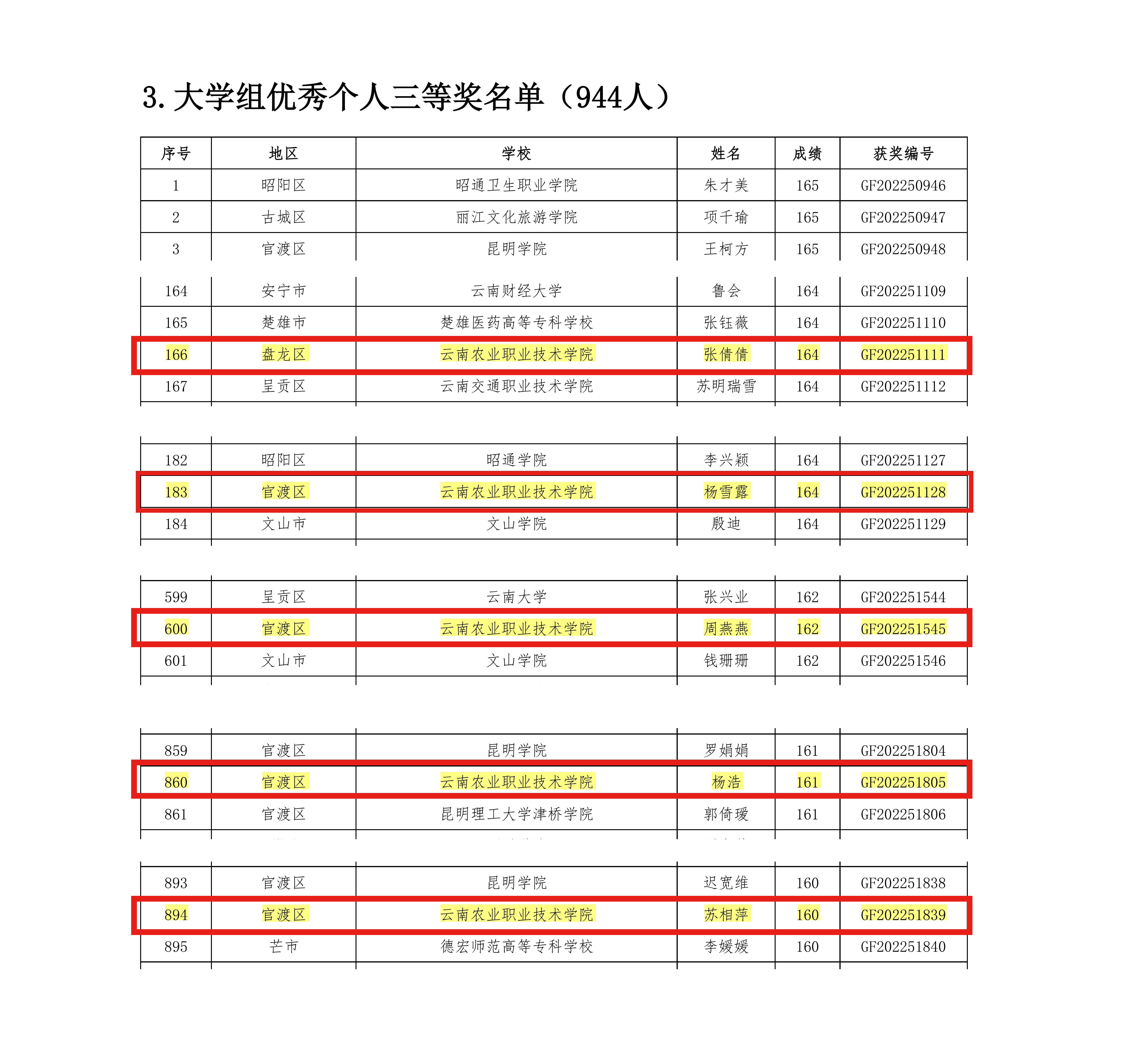 我院榮獲大學組二等獎單位;代婉琪和段穎2名同學榮獲大學生組優秀個人一等獎,陸詩雨、郭思容和杜洪3名同學榮獲大學生組優秀個人二等獎,張倩倩、楊雪露、周燕燕、楊浩和蘇相萍5名同學榮獲大學生組優秀個人三等獎;方芳和黃熙喬2位老師榮獲大學生組優秀指導教師一等獎,張倬、楊袁剛、李長科和張云蓉4位老師榮獲大學生組優秀指導教師二等獎,史普酉、段珩、陳可悅、熊艷君、鄺松芬、楊子姍、張旺宏、茶金龍和李道全9位老師榮獲大學生組優秀指導教師三等獎。
