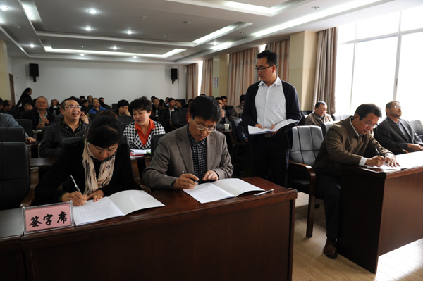 會議最后,崔金賦書記、李永忠校長分別與分管校領導,行政部門、二級學院簽訂了2015年黨風廉政建設責任書。(黨委宣傳部供稿)