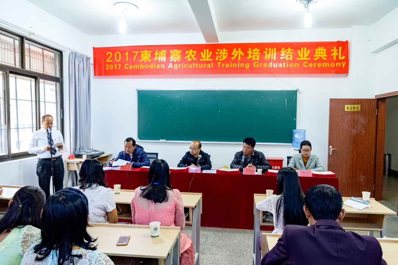 2017年11月23日上午9:00,在培訓(xùn)班結(jié)業(yè)儀式上副院長楊波同志講話中指出:在國家農(nóng)業(yè)部、云南省農(nóng)業(yè)廳的高度重視下,在各位學(xué)員的積極配合下,經(jīng)過大家的共同努力,通過理論教學(xué)和現(xiàn)場(chǎng)觀摩教學(xué),由云南農(nóng)業(yè)職業(yè)技術(shù)學(xué)院承辦的“柬埔寨農(nóng)業(yè)涉外培訓(xùn)”已圓滿完成。從整個(gè)培訓(xùn)過程看,本次培訓(xùn)具有以下六個(gè)鮮明特點(diǎn):