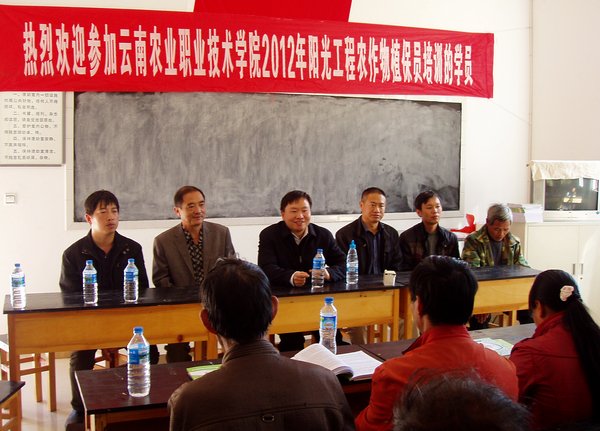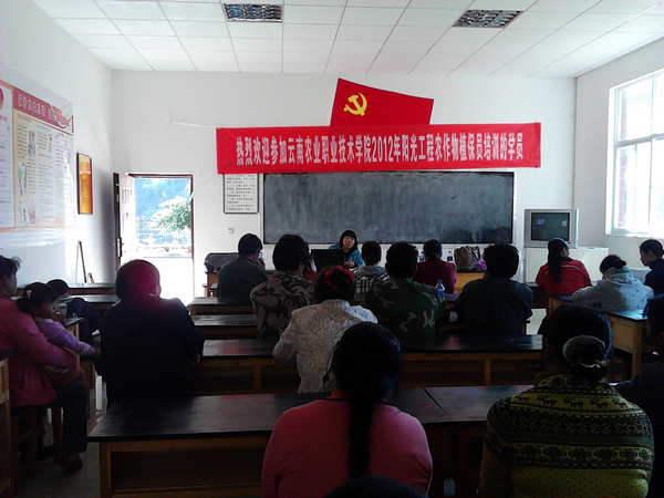 為扎實推進“四群教育”活動,2012年11月19日—12月4日,學(xué)院在深入調(diào)研的基礎(chǔ)上,結(jié)合富民縣農(nóng)業(yè)農(nóng)村科技發(fā)展需求,充分發(fā)揮中央農(nóng)村勞動力培訓(xùn)陽光工程項目的示范帶動作用和學(xué)院師資優(yōu)勢,重點圍繞學(xué)院“四群教育”掛靠聯(lián)系村——麥依甸村委會、龍馬村委會、西核村委會、石板溝村委會、則核村委會、糯支村委會、麥場村委會、白石巖村委會等,開展農(nóng)作物植保員、村級動物防疫員、種子經(jīng)銷員、水產(chǎn)養(yǎng)殖員培訓(xùn),提升富民縣現(xiàn)代農(nóng)業(yè)發(fā)展水平。