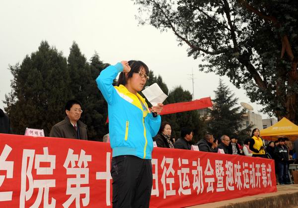 2013年12月11日至13日,我院第十屆田徑運(yùn)動(dòng)會(huì)暨冬季趣味運(yùn)動(dòng)會(huì)在小哨校區(qū)成功舉行。黨委書(shū)記崔金賦、黨委副書(shū)記趙剛、副院長(zhǎng)何明東、副院長(zhǎng)趙莉、副院長(zhǎng)俞浩、院長(zhǎng)助理田應(yīng)華等院領(lǐng)導(dǎo)出席開(kāi)幕式。開(kāi)幕式由何明東副院長(zhǎng)主持。