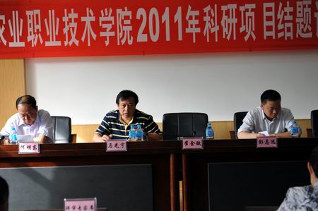 會議先后聽取了學院黨委書記第三屆學術委員會主任崔金賦、省農業廳科教處畢虹處長和省教育廳科學技術處馬光宇副處長的講話。崔書記在講話中強調,正式的科研項目結題評審工作會在學院是第一次,學院由兩所中專合并組建,中專時期的科研是薄弱環節,成果和層次都較低、數量也少,學院升格后科研得到重視,水平層次數量都有不同程度的提高。崔書記指出,我們要認真領會胡錦濤同志在清華大學100年校慶上的講話精神,學習不僅僅是政治思想理論,也是你的研究領域;學習不僅僅是工作的需要,也是一種生活方式。學院目前的科研項目該結題的結題,該延期的延期,不合格的取消,有必要梳理各項目的進展情況。但科研學術要把它提到應用的高度,全院要形成科研的氛圍。