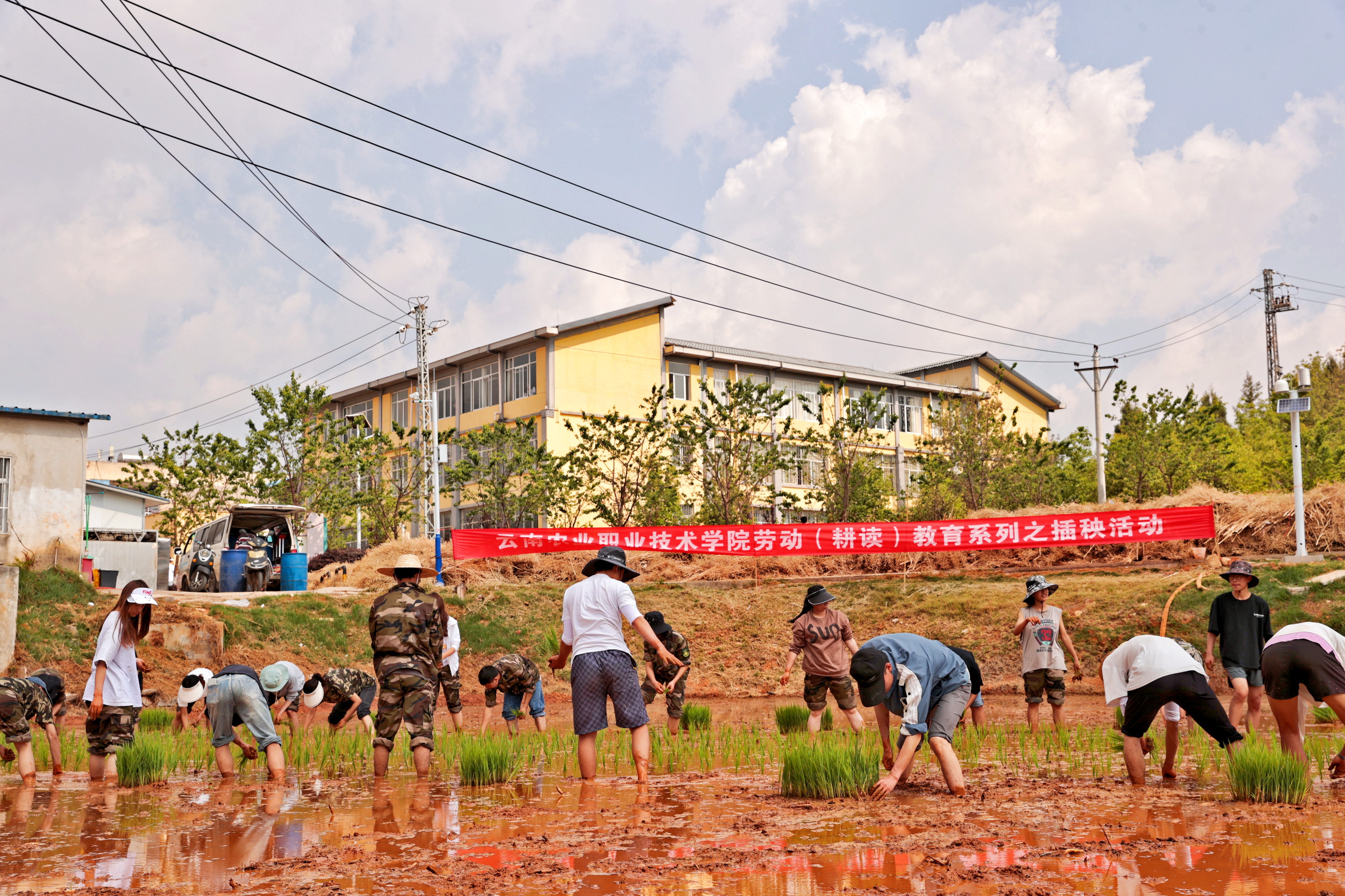 通知中心栽種初夏秧,稻谷滿糧倉。5月11日至12日,學(xué)院開展了主題為“尊重勞動(dòng),尊重價(jià)值”的勞動(dòng)(耕讀)教育系列之插秧活動(dòng)。學(xué)院蘇華偉副院長、雷衡副院長深入田間地頭帶領(lǐng)8個(gè)專業(yè)200余名同學(xué)開展插秧活動(dòng)。此次栽種面積達(dá)6畝水稻田,栽種了云雜50、滇黑優(yōu)615及15個(gè)實(shí)驗(yàn)水稻小品種。