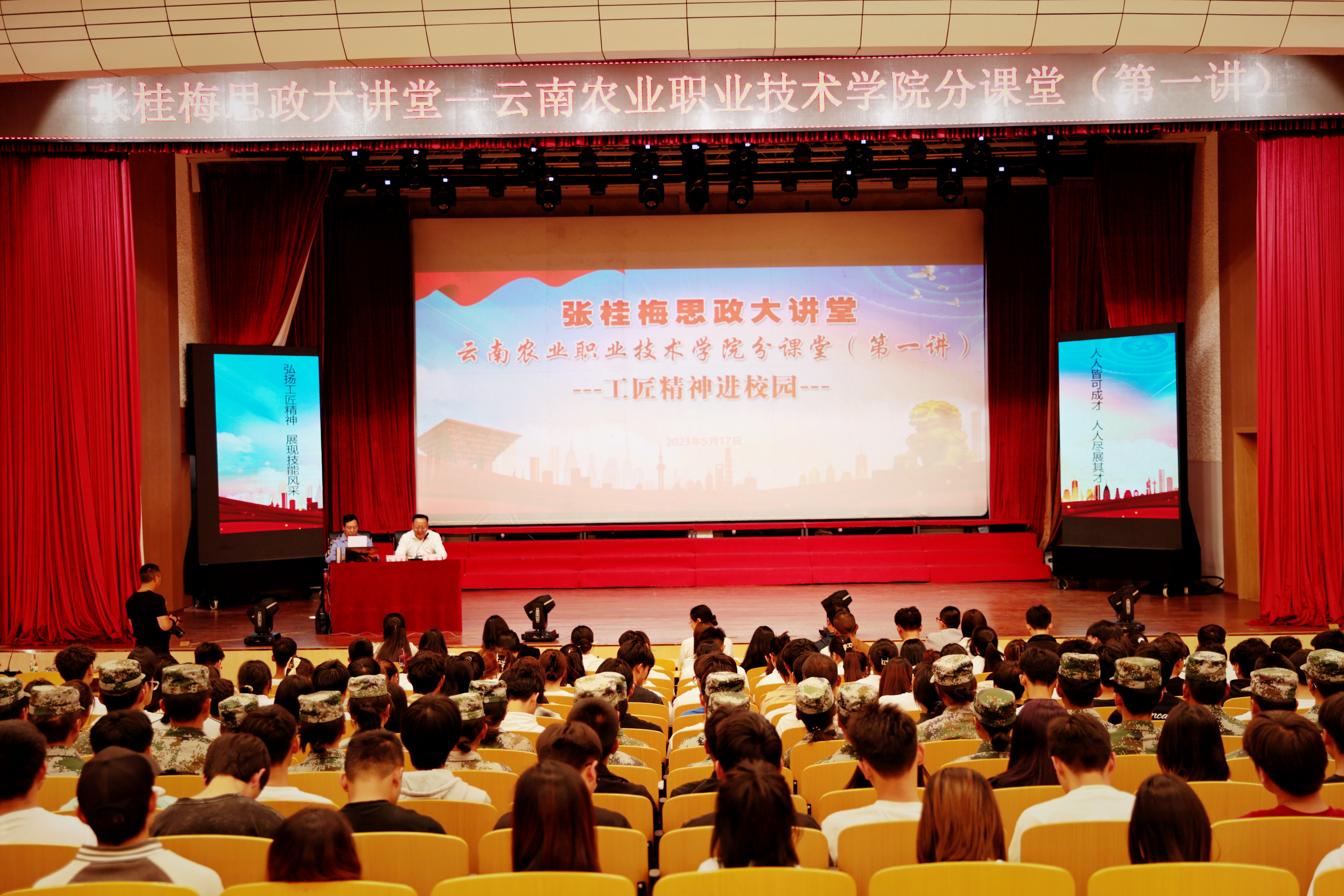 為弘揚工匠精神,激勵更多農職學子走技能成才、技能報國之路,5月17日,“張桂梅思政大講堂”云南農業職業技術學院分課堂第一講“工匠精神進校園”在小哨校區蠶桑禮堂開講。活動邀請了全國優秀共產黨員、全國勞動模范、全國技術能手、云嶺楷模、云嶺首席技師、云嶺工匠耿家盛為師生作主題宣講。活動由黨委書記文俊主持,師生代表400余人現場聽講。