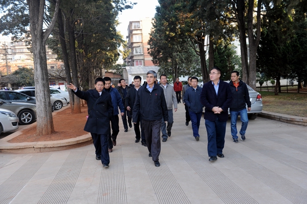 2014年元月8日上午,我院迎來了省委省政府及昆明市有關領導十三人蒞臨兩校區調研學院危房排除及建校選址等事宜。云南省委副秘書長錢恒義、省政府副秘書長普建輝、省發改委副巡視員保衛民、省委高校工委副書記省教育廳副廳長鄒平、省國土資源廳總規劃師趙喬貴、省農業廳副廳長孫海清、昆明市政府副秘書長市規劃局局長尹旭東等十三位領導,學院黨委書記崔金賦、院長李永忠、副院長何明東、副院長趙莉、院長助理田應華,以及黨院辦、基建辦、宣傳部、教務處、畜牧獸醫系、生物工程系、園藝與園林工程系的有關負責人出席調研會。