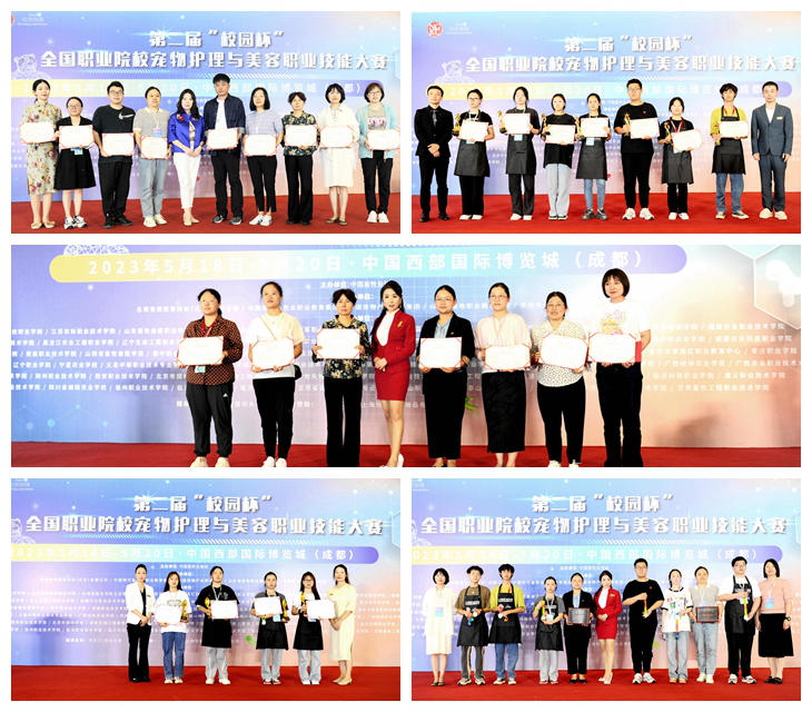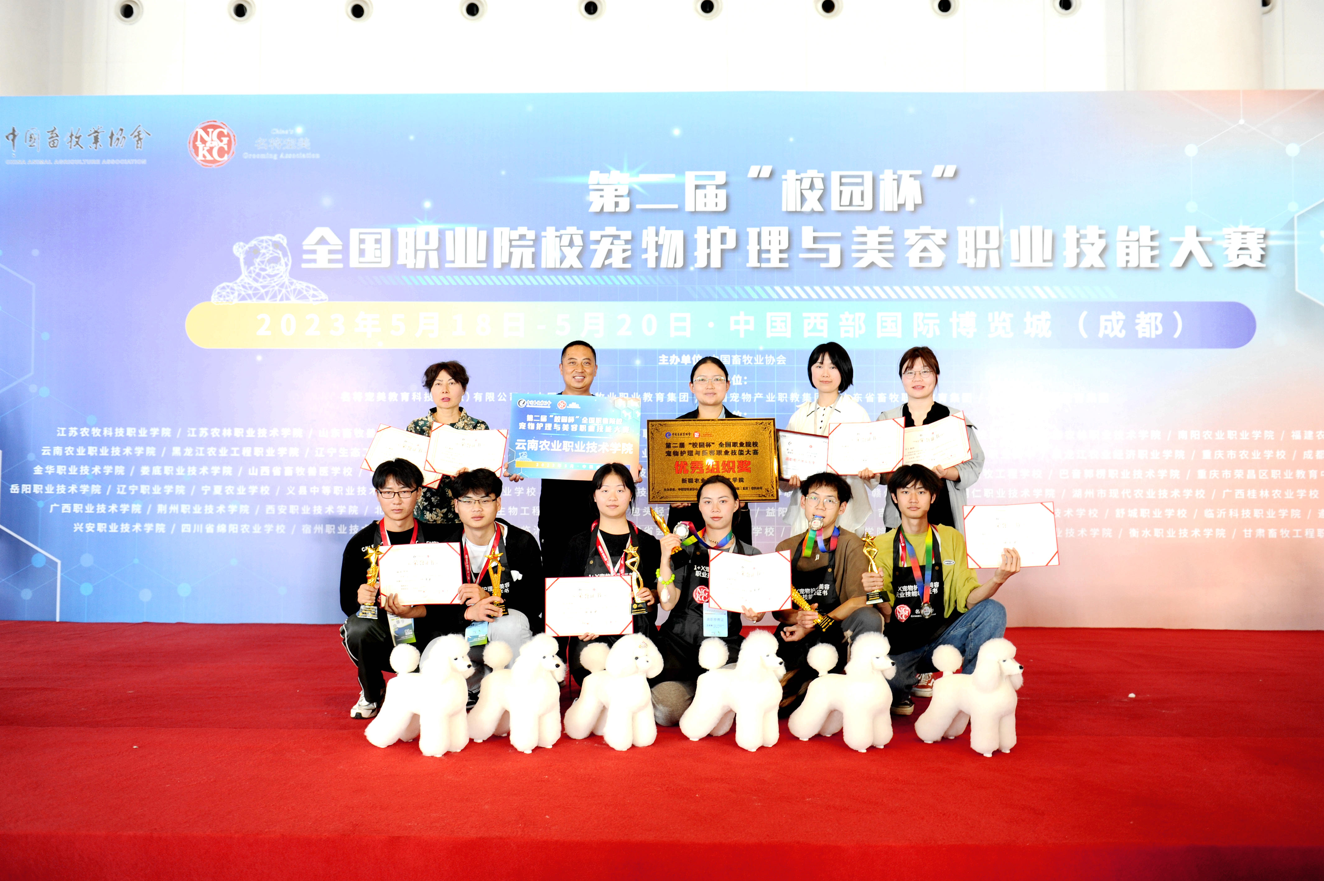 5月18-20日,第二屆校園杯全國職業院校寵物護理與美容職業技能大賽暨海峽兩岸交流賽在中國西部國際博覽城(成都)隆重舉行。畜牧獸醫學院派出20、21寵物養護與馴導專業共6位同學參加高職組比賽,經過3個小時的激烈比拼,王瓊雅、文睿程、楊水花3位同學獲得特等獎;董國軍、楊浩2位同學獲一等獎;譚昌魏同學獲二等獎。同時,還獲得了高職組團體亞軍的好成績。