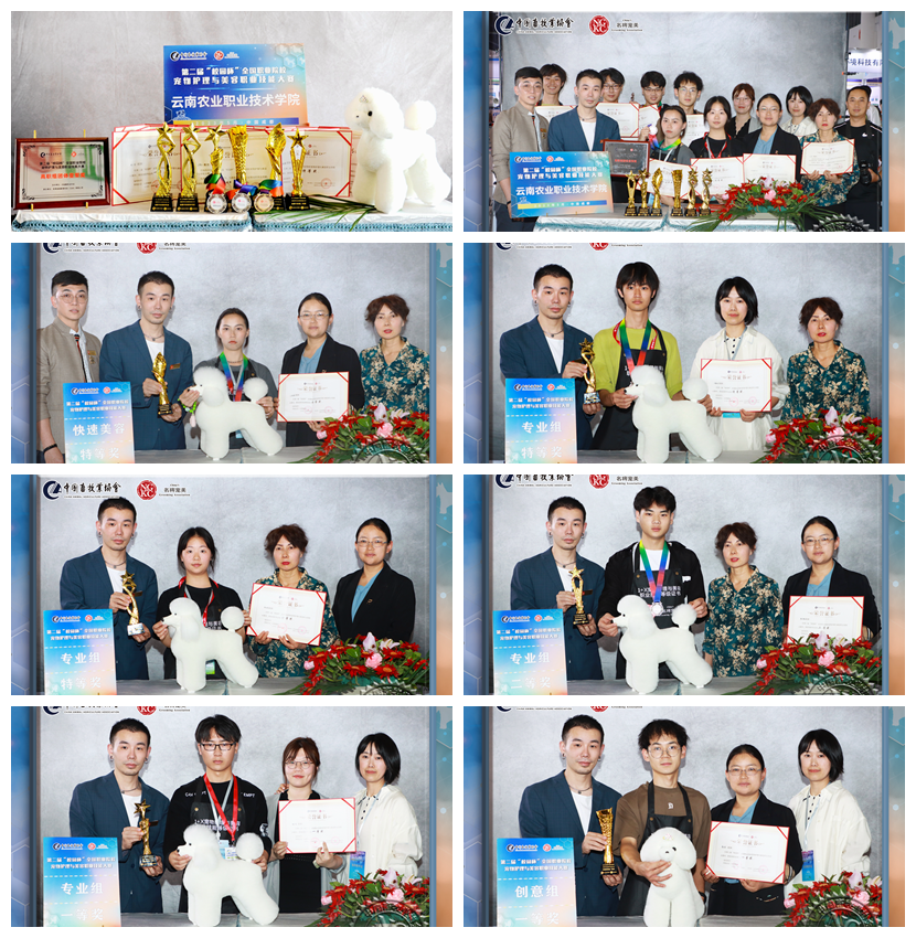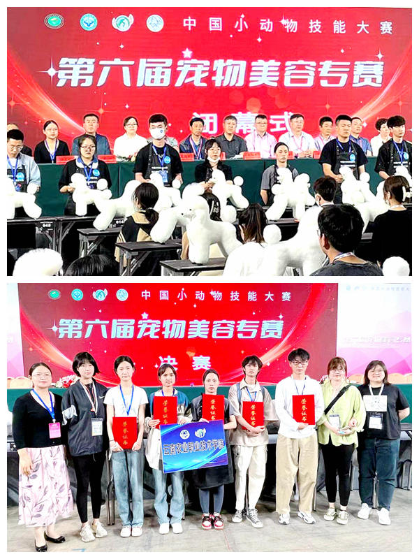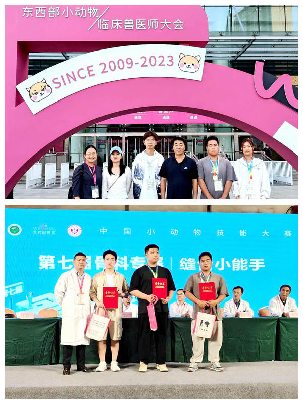 5月22日-24日,中國小動物技能大賽在山東青島隆重舉行,畜牧獸醫學院派出8名同學參賽,其中第六屆寵物美容專賽,20寵物養護與馴導王瓊雅獲特等獎,21寵物養護與馴導文睿程獲一等獎,21寵物養護與馴導戴建微、管蓉、楊浩獲二等獎。第七屆骨科專賽21動物醫學趙慶良獲一等獎和“最佳縫合小能手”稱號,22寵物醫療技術黃鈺惠獲二等獎,22動物醫學楊俊鋒獲三等獎。