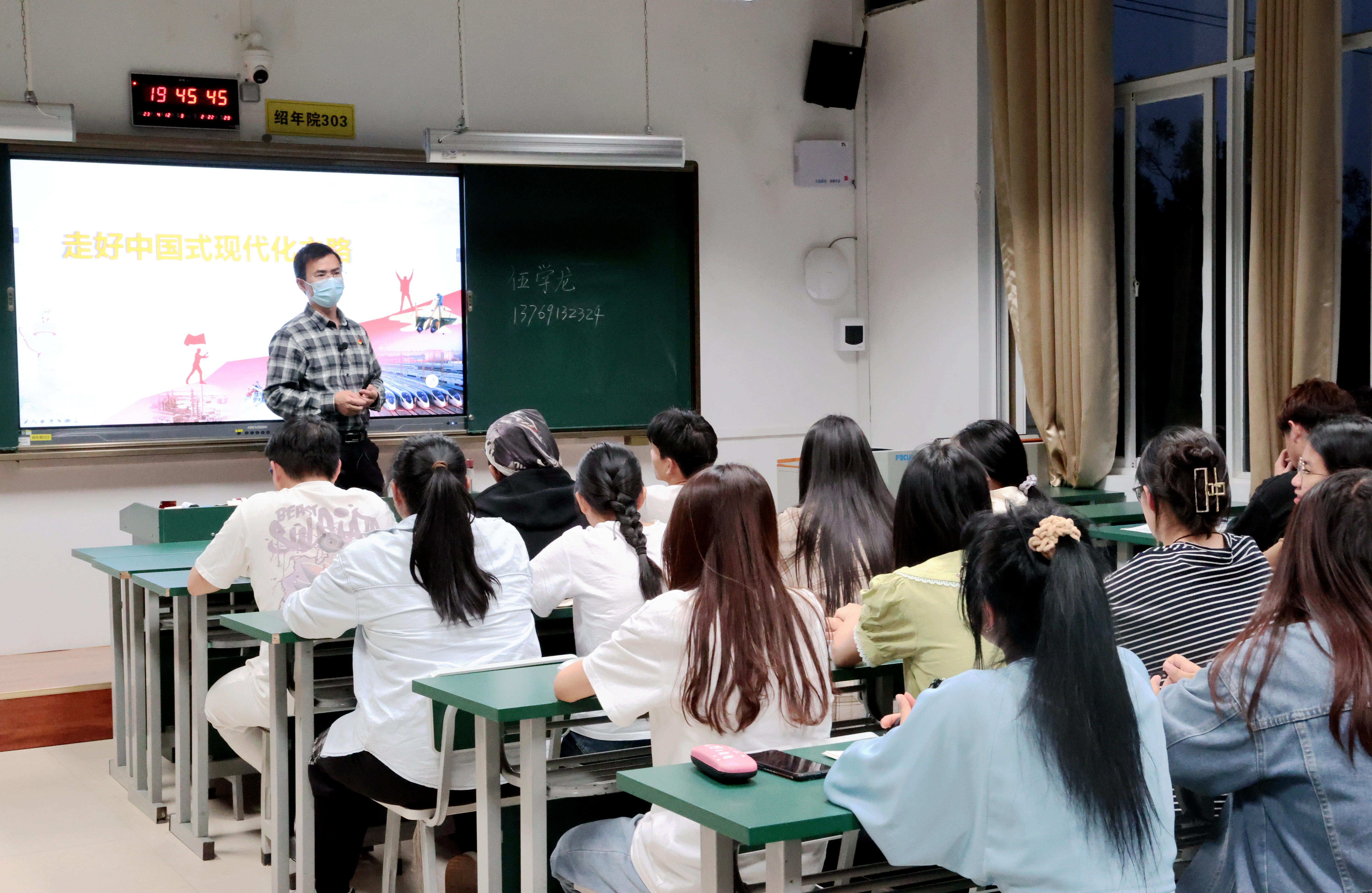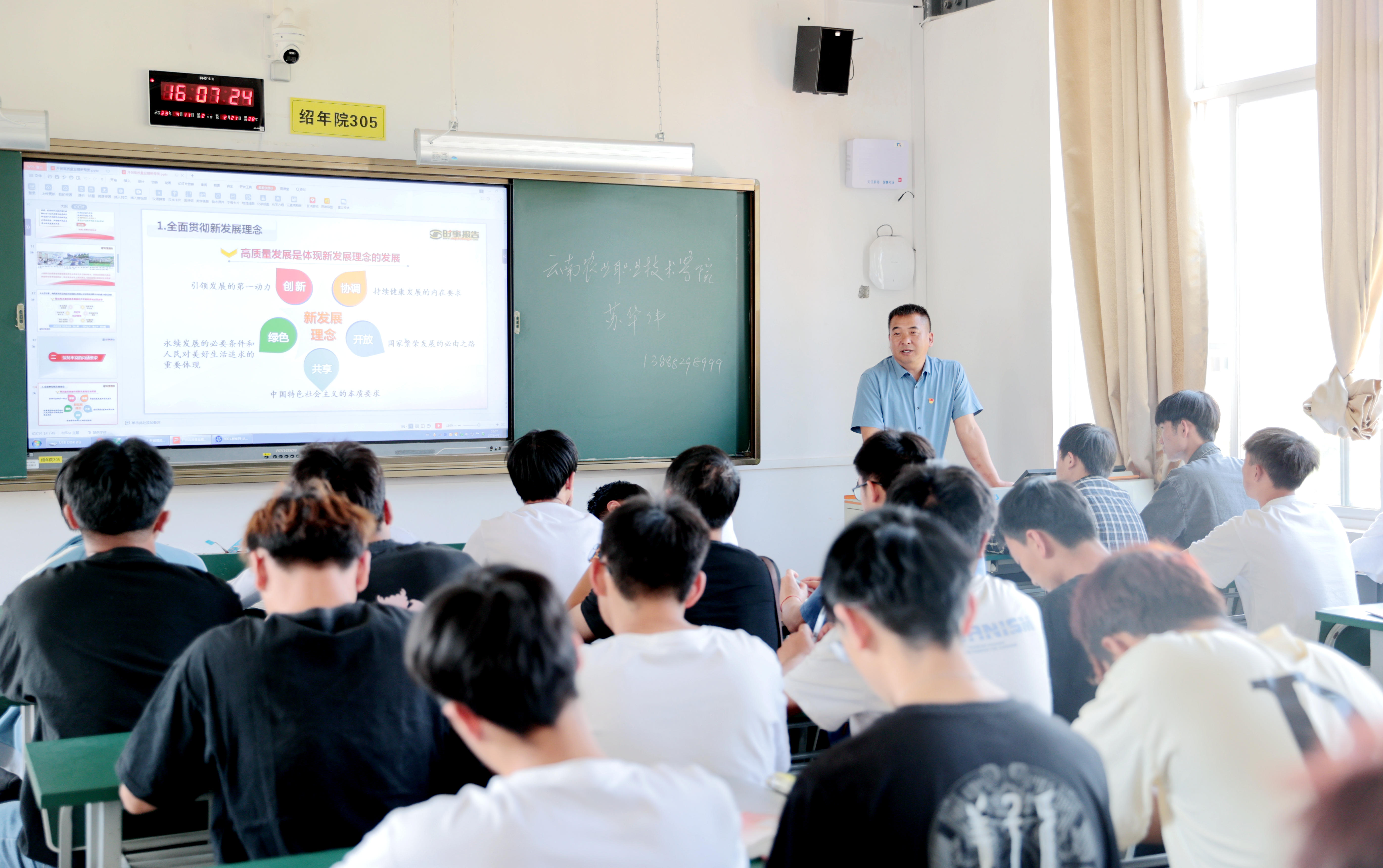校領導充分發揮自身學術素養和實踐經驗,用生動的語言、鮮活的事例、嚴謹的邏輯,為同學們帶來一堂堂生動的思政課。黨委書記文俊圍繞“以中國式現代化全面推進中華民族偉大復興”主題,給學生帶來一堂別開生面的思政課;黨委副書記、院長陳太安以“高質量發展 云農職在行動”為主題,聚焦學院高質量發展,引導學生深刻認識作為農職學子的使命擔當;黨委副書記伍學龍圍繞“走好中國式現代化之路”專題課程開展形勢與政策課教學;紀委書記馮志宏以“弘揚社會主義核心價值觀”為主題為學生上了一堂中國傳統文化課;副院長楊波、雷衡、蘇華偉、田應華紛紛走進教學班課堂,圍繞“聚天下英才 筑強國之基”“走好中國式現代化之路”“開創高質量發展新局面”等主題為學生講授形勢與政策課。