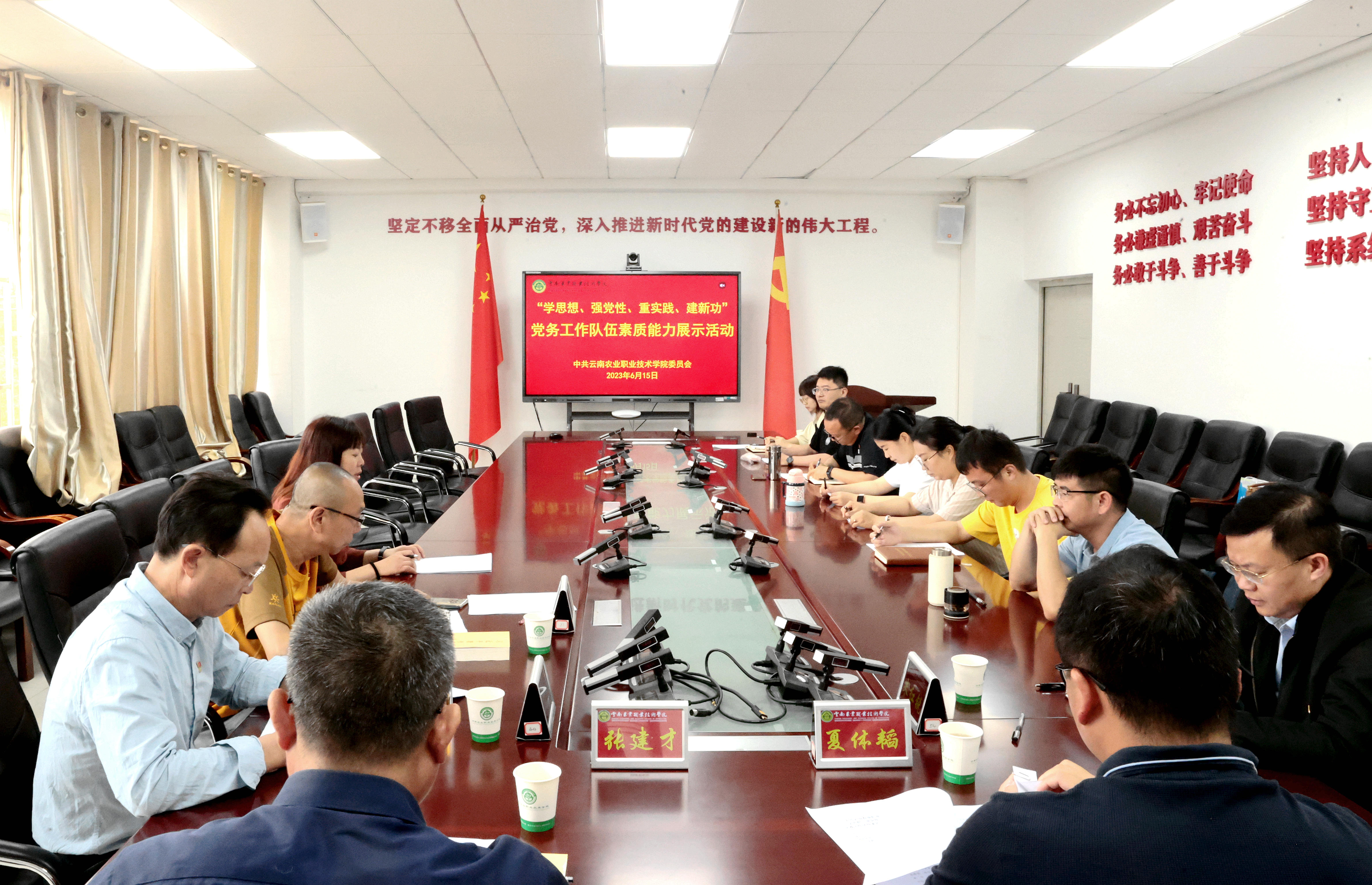通知中心為深入學習貫徹習近平新時代中國特色社會主義思想和黨的二十大精神,推動主題教育不斷走深走實,學院黨委于6月15日在小哨校區綜合樓421會議室組織開展了黨務工作隊伍素質能力展示活動。活動由黨委組織部副部長歐陽曉芳主持,黨委委員、組織部部長夏體韜,黨委委員、馬克思主義學院黨總支部書記張建才,基礎部(體育工作部、公共藝術教育部)黨總支部書記施碧強,省種畜繁育推廣中心黨總支部書記劉曉躍等5位同志擔任評委。