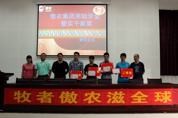 傲農集團是一家以科學化、集約化、商品化和市場化為導向的高科技農牧企業(yè),與畜牧獸醫(yī)學院在2014年3月開始校企合作,2014年七月接受10名學生參加生產實訓,公司出資兩萬余元每學期都舉行對學生的獎勵助學。